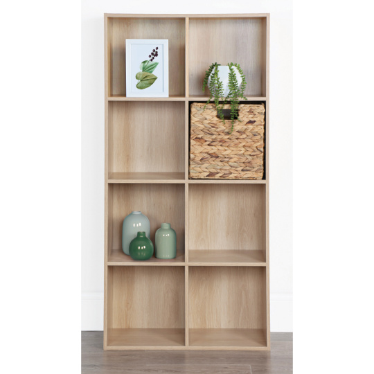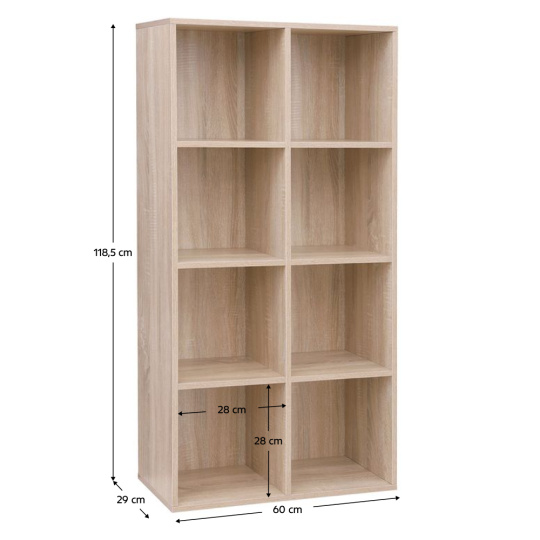 Materiál: foliovaná DTD Barva: dub přírodní Rozměry (ŠxHxV): 59,5x28,5x119 cm Tloušťka materiálu: 1,2 cm Otevřený Policový Rozměry police (ŠxV): 27,7x28 cm Nosnost police: 5 kg Osm odkládacích ploch Regál není dodáván s úložným boxem Víceúčelový Praktický Moderní design Doporučujeme připevnit ke zdi Dodáván v demontu