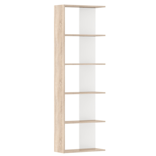 Materiál: laminovaná DTD Barva: dub sonoma/bílá Rozměry (ŠxHxV): 60x25x180 cm Tloušťka materiálu: 1,6 cm Výška mezi policemi: 34 cm Hloubka police: 23,2 cm Nosnost polic: 5 kg Otevřený úložný prostor Víceúčelový Moderní design Praktický Doporučujeme připevnit ke zdi Kvalitní slovenský výrobek Dodáváno v demontu