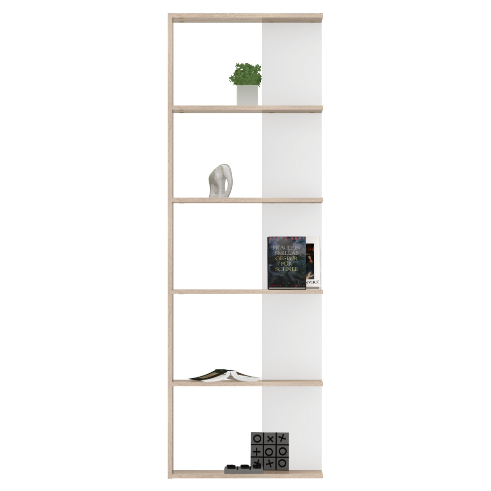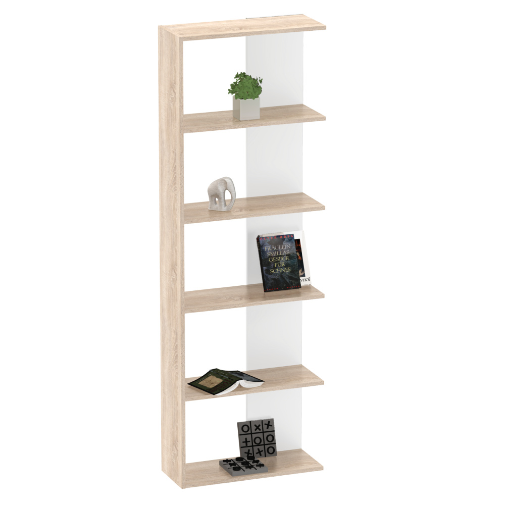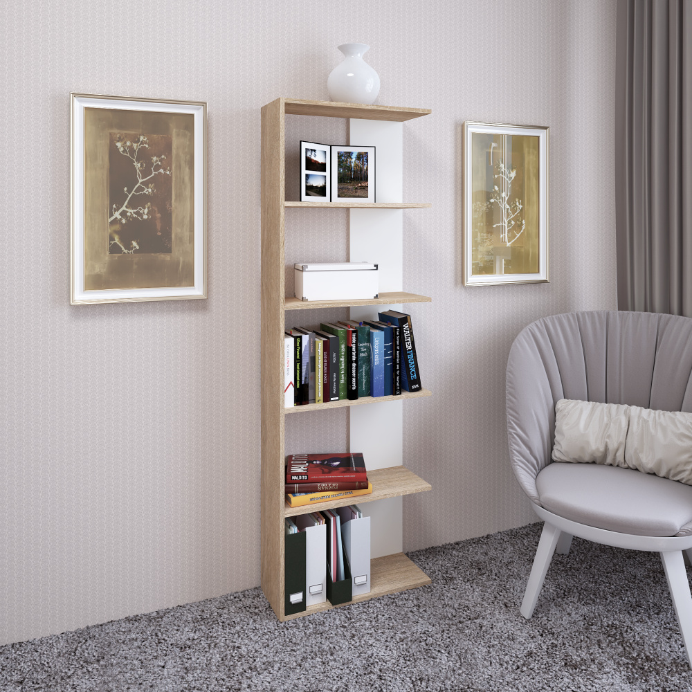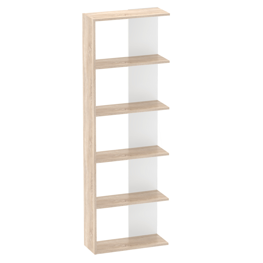 Materiál: laminovaná DTD Barva: dub sonoma/bílá Rozměry (ŠxHxV): 60x25x180 cm Tloušťka materiálu: 1,6 cm Výška mezi policemi: 34 cm Hloubka police: 23,2 cm Nosnost polic: 5 kg Otevřený úložný prostor Víceúčelový Moderní design Praktický Doporučujeme připevnit ke zdi Kvalitní slovenský výrobek Dodáváno v demontu