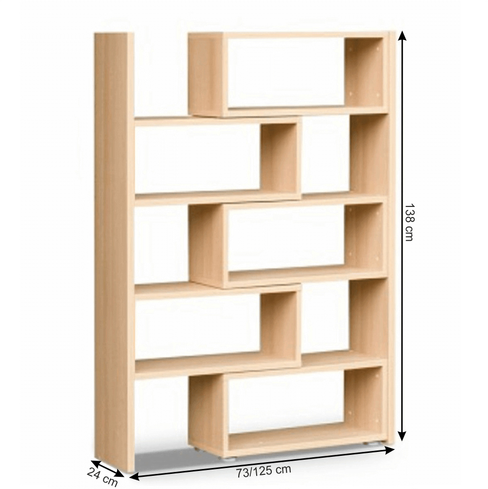 Moderní víceúčelový regálový systém s mnohostranným využitím, Materiál: DTD laminovaná, Provedení: dub sonoma, Rozměry (ŠxHxV): 73-125x24x138 cm Dodávané v demontu.