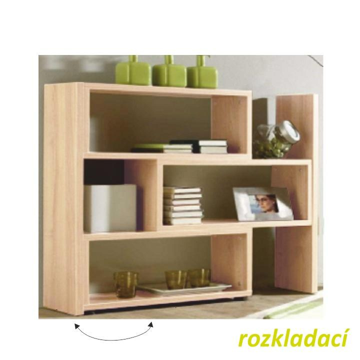 Moderní víceúčelový regálový systém KLOE III Materiál: DTD laminovaná Provedení: dub sonoma Rozměry (ŠxHxV): 73-125x24x83 cm Dodávané v demontu.