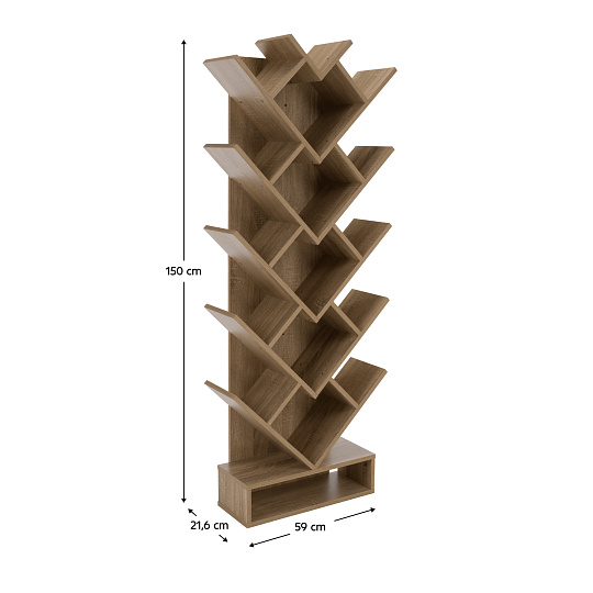 Materiál: DTD Barva: hnědošedá dub Rozměry (ŠxHxV): 59x21,6x150 cm Tloušťka materiálu: 15 mm poutavý design Netradičně rozvržené police Víceúčelový Dodáván v demontu