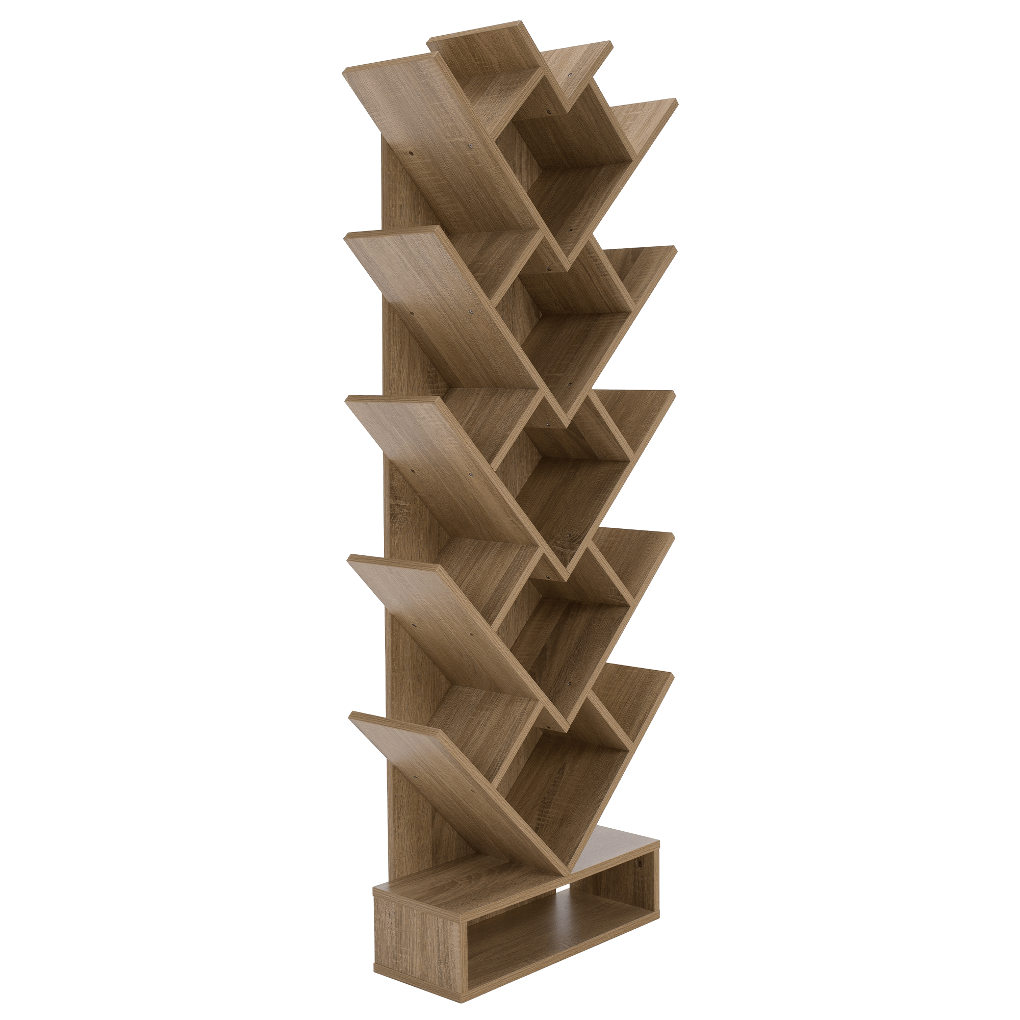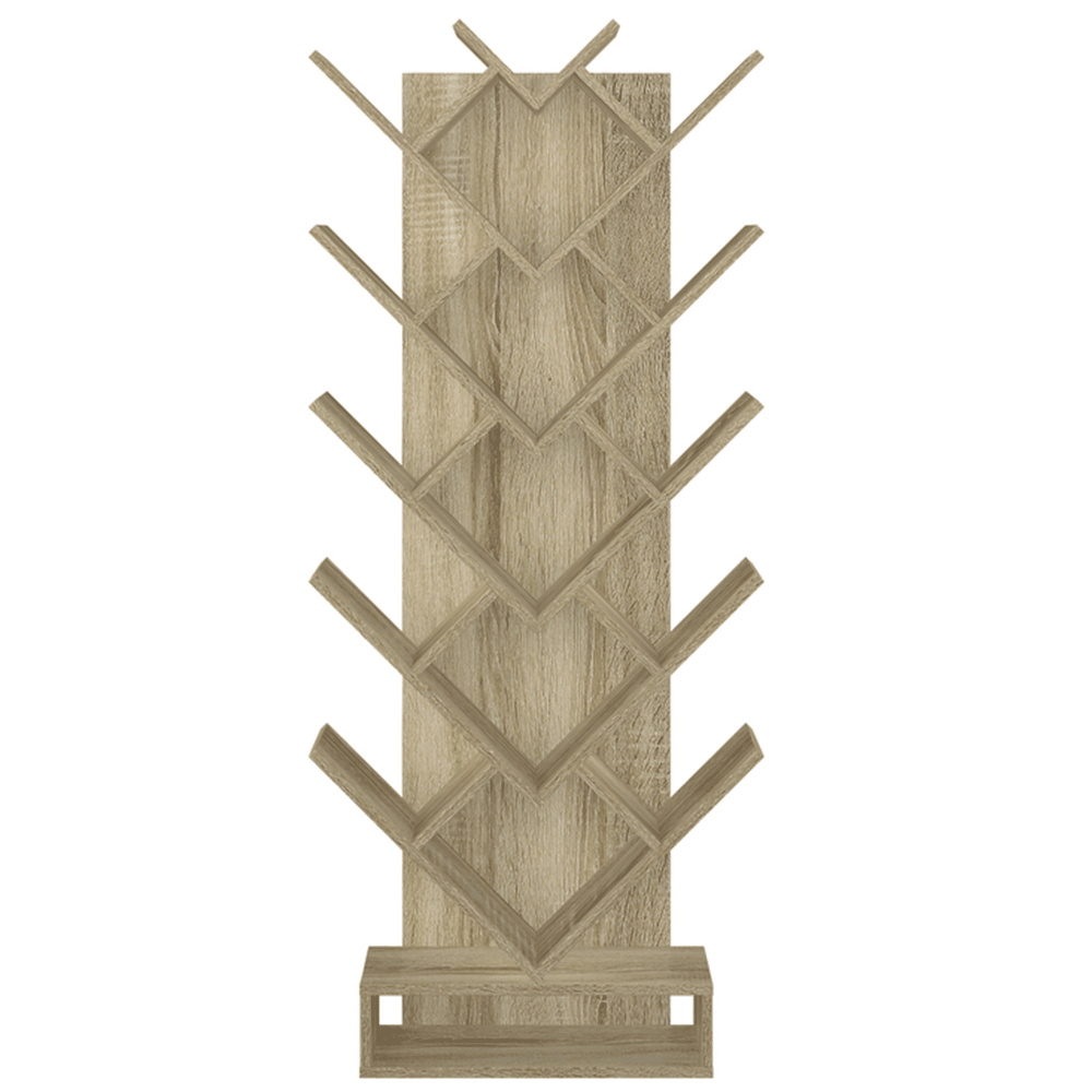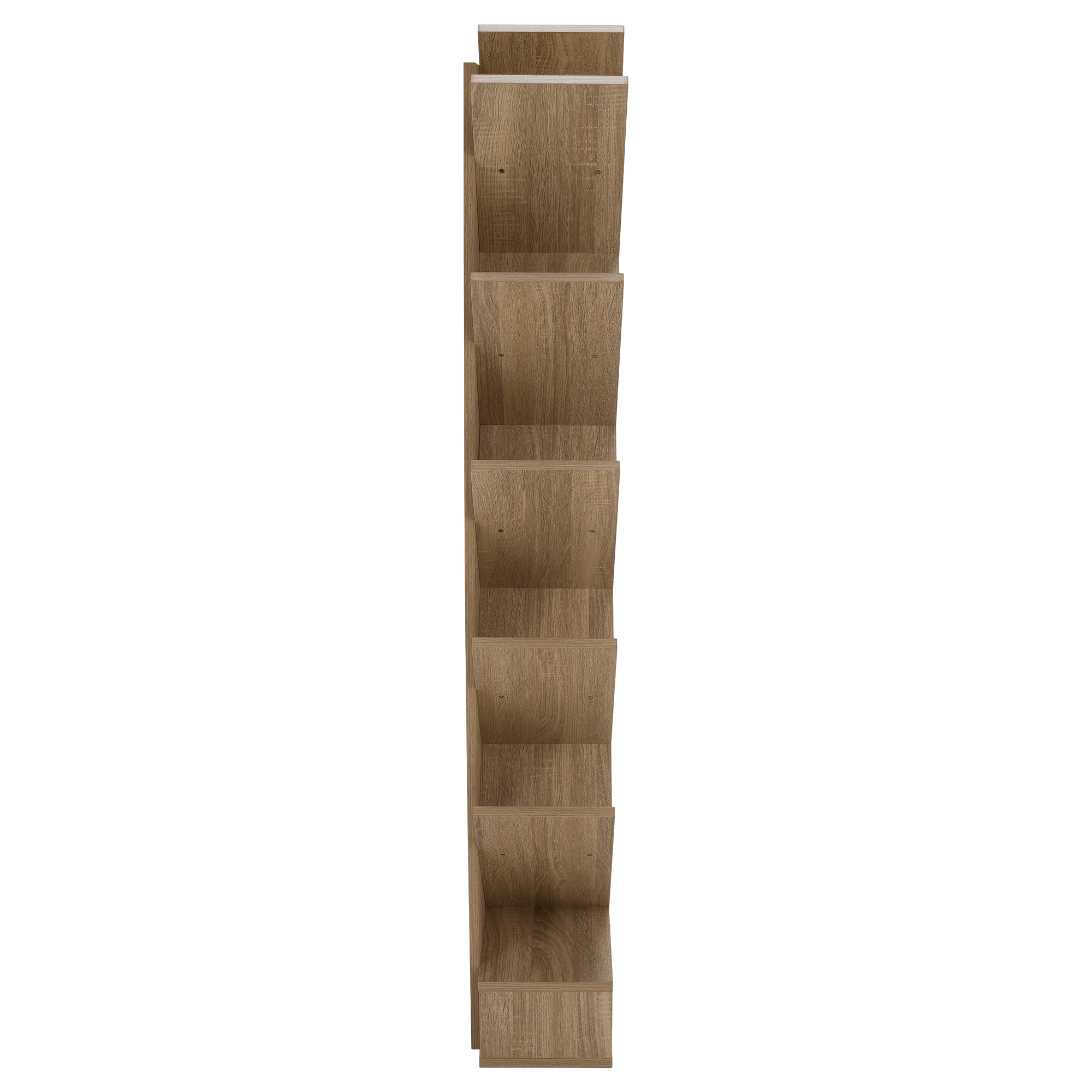 Materiál: DTD Barva: hnědošedá dub Rozměry (ŠxHxV): 59x21,6x150 cm Tloušťka materiálu: 15 mm poutavý design Netradičně rozvržené police Víceúčelový Dodáván v demontu