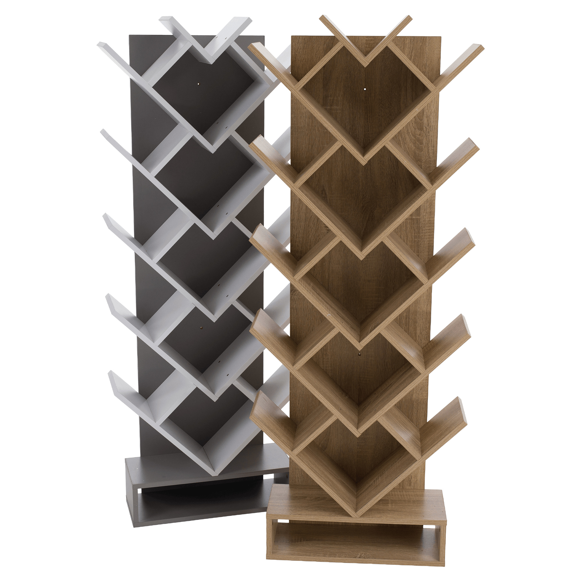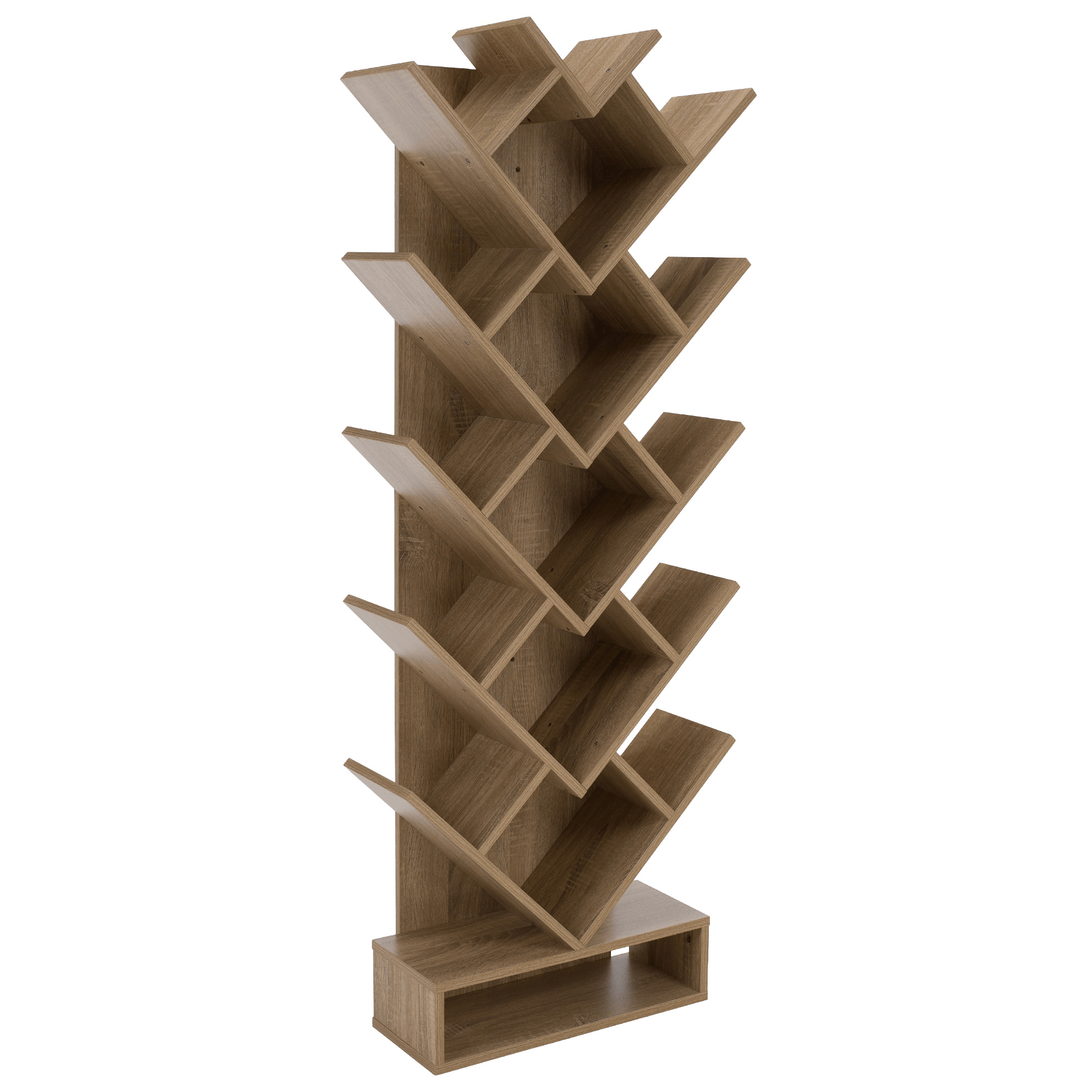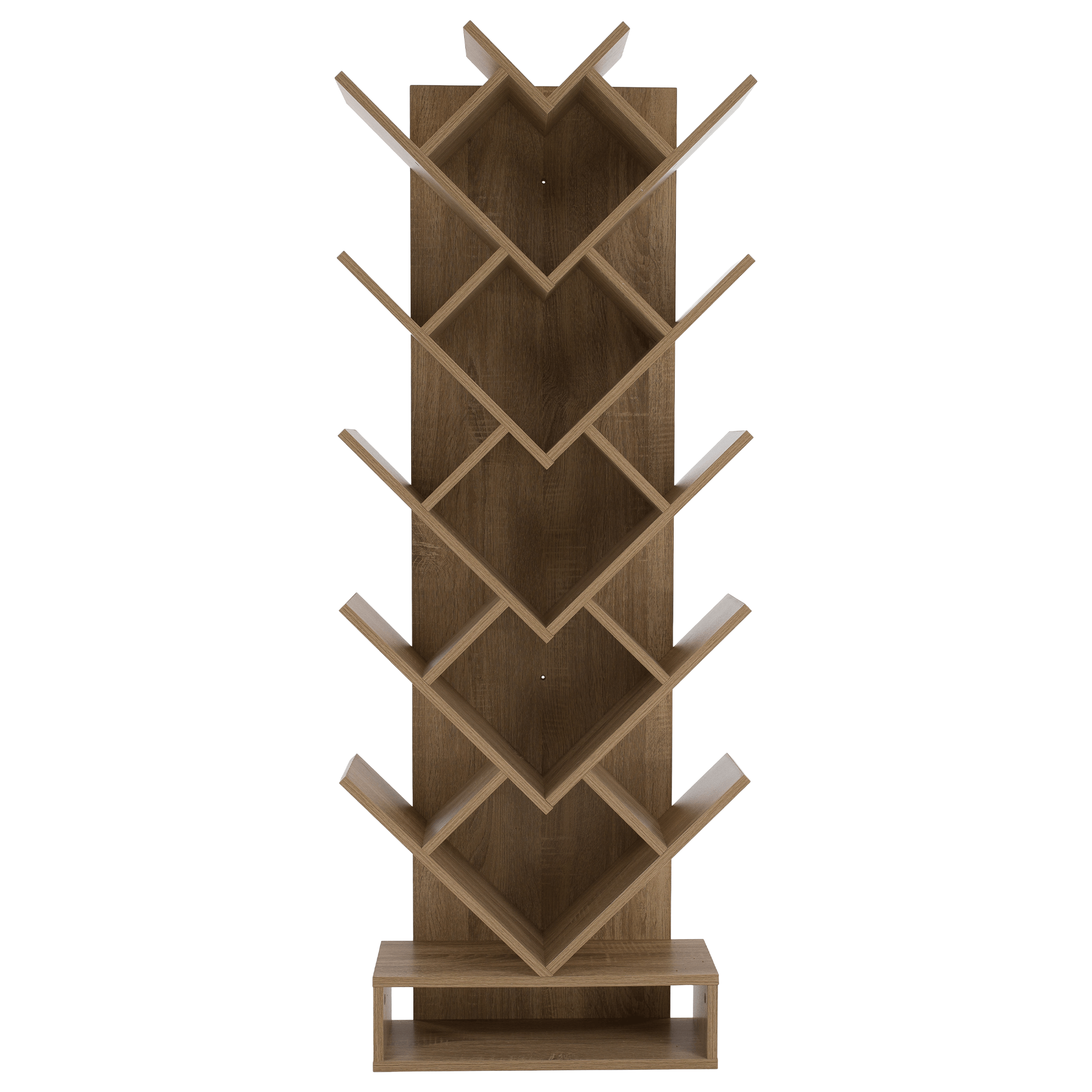 Materiál: DTD Barva: hnědošedá dub Rozměry (ŠxHxV): 59x21,6x150 cm Tloušťka materiálu: 15 mm poutavý design Netradičně rozvržené police Víceúčelový Dodáván v demontu