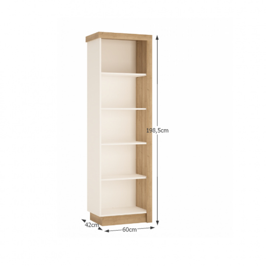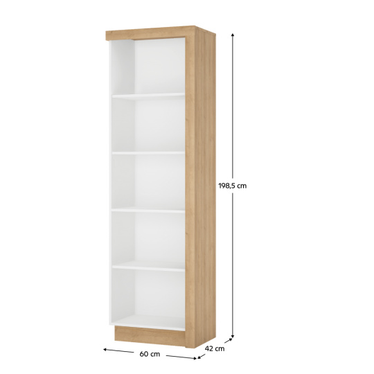 Regál LYOR01 levý ze sektorové sestavy LEONARDO v provedení dub riviera / bílá Rozměry (ŠxHxV): 60x42x198,5 cm Tloušťka materálu: 16 mm Dodávané v demontu
