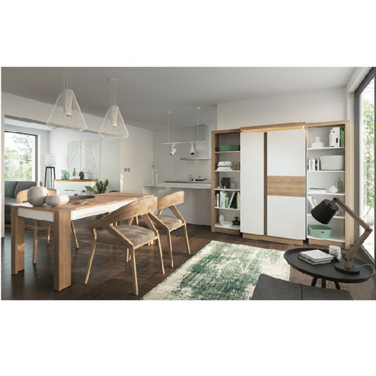 Rozkládací jídelní stůl ST KORA. Barevné provedení sosna andersen. Materiál laminovaná DTD, MDF. Rozměry (ŠxHxV): 160-203x90x82 cm Tloušťka materiálu korpus: 22 mm Tloušťka materiálu vrchní desky: 36 mm Hmotnost: 52kg