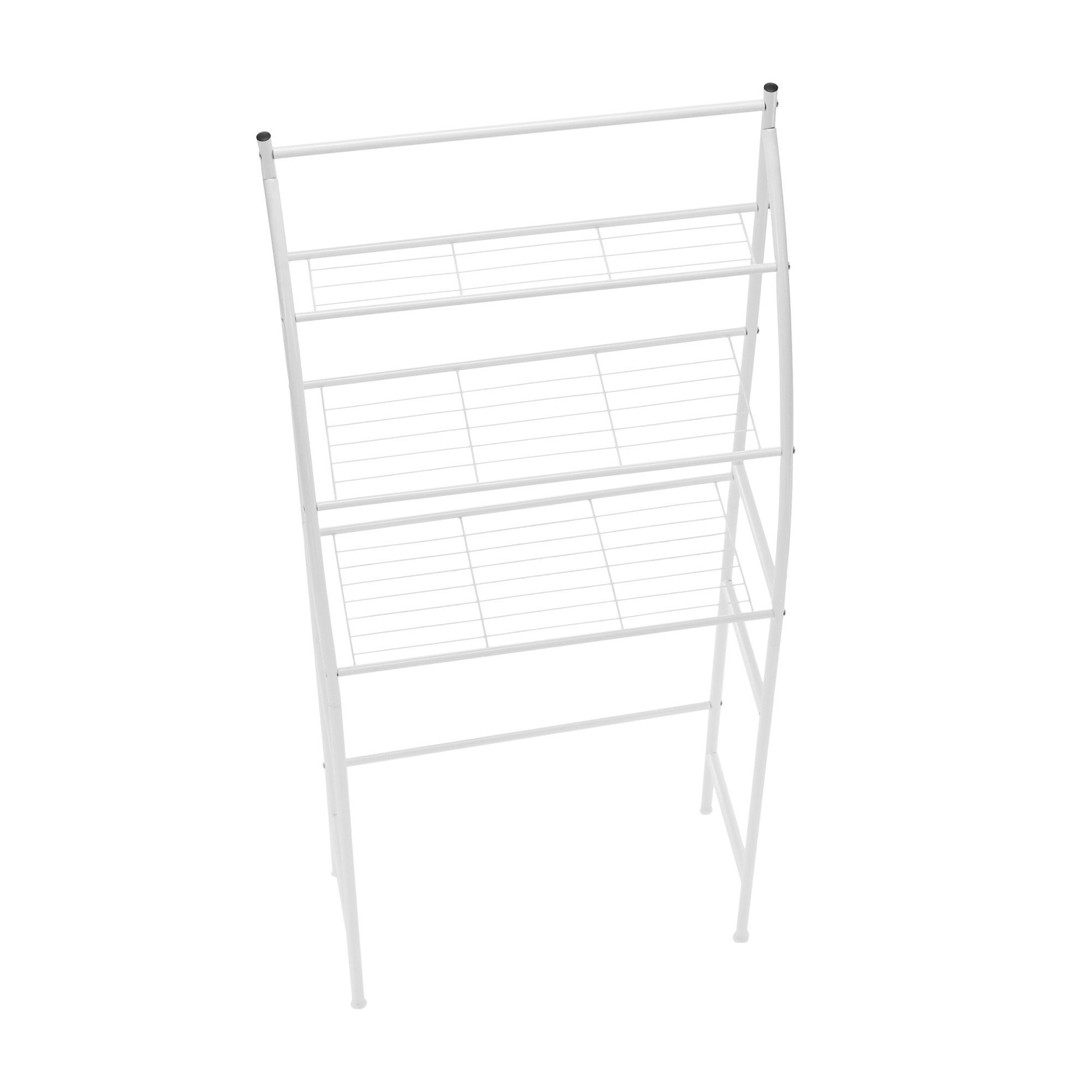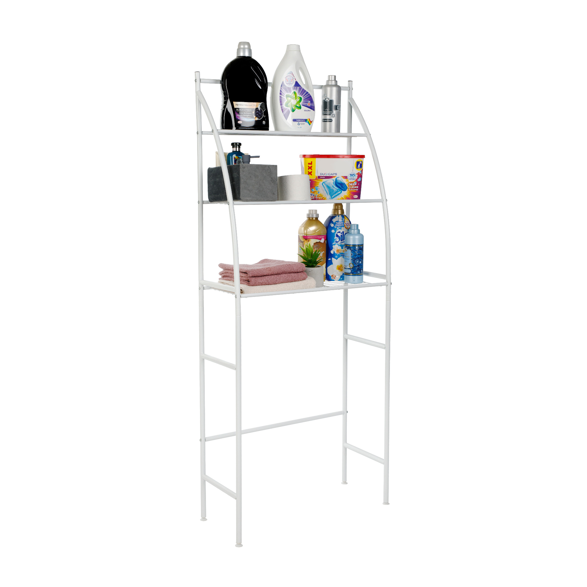 Materiál: kov Barva: bílá Rozměry (ŠxHxV): 69x30x166 cm Prostor na pračku (ŠxHxV): 69x30x86,5 cm Výška první police: 30,7 cm Výška druhé police: 23,7 cm Tloušťka materiálu: 13-19 mm otevřené police Praktické vytvoření úložného prostoru Vhodný nad pračku nebo toaletu Přináší organizaci a uspořádání do koupelny Nosnost na polici: 5 kg Dodávané v demontu