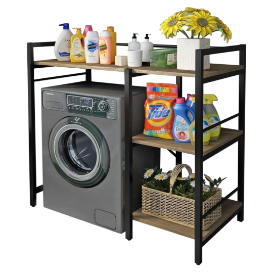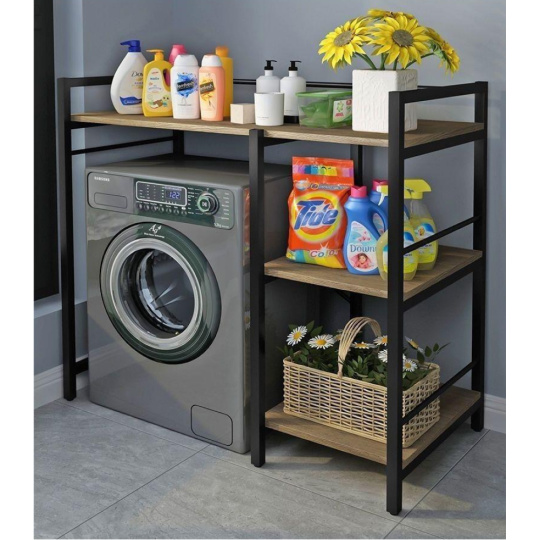 Materiál: laminovaná MDF/kov Barva: dub/černá Rozměry (ŠxHxV): 100x60x111,5 cm Prostor na pračku: 65x98 cm Tloušťka materiálu: 1,2 cm Hmotnost: 12,2 kg Výška nožičky: 7 cm Otevřené police Nosnost na polici: 5 kg Univerzální Praktické vytvoření úložného prostoru Vhodný na pračku Přináší organizaci a uspořádání do koupelny Dodáváno v demontu