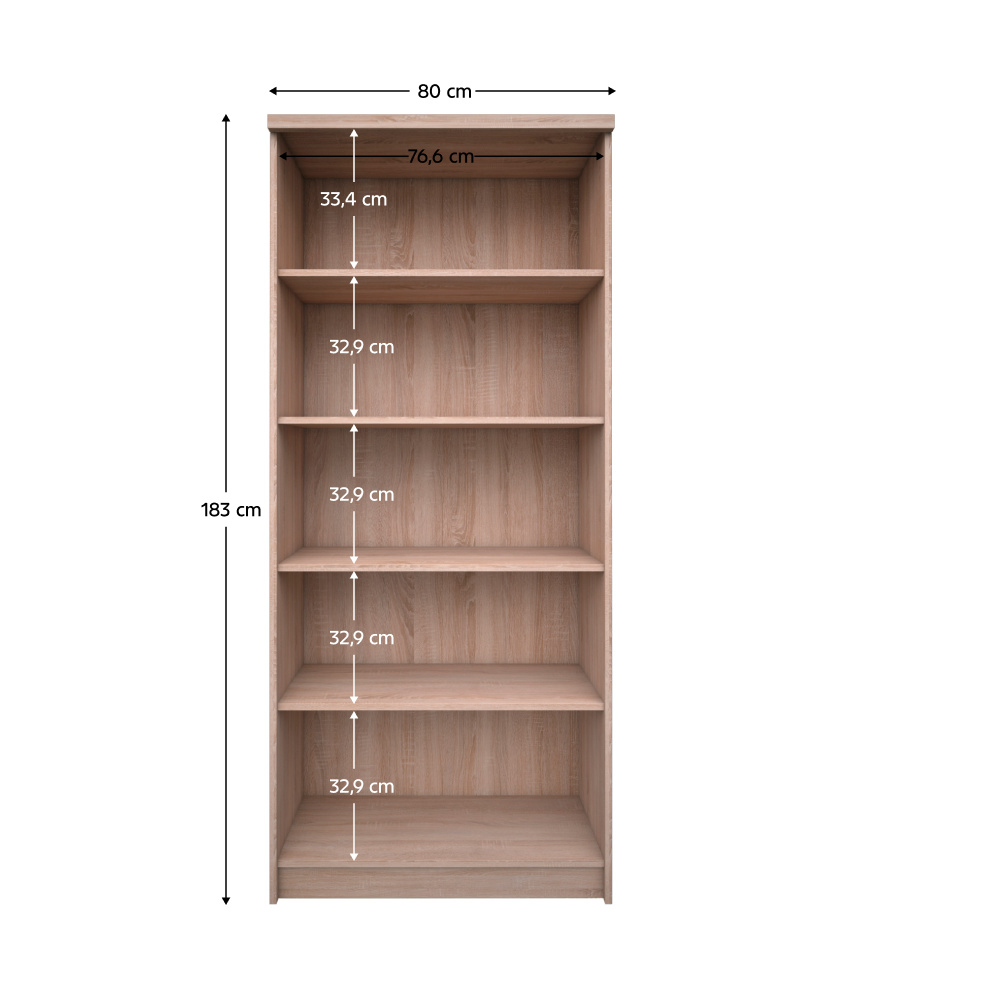 Regál otevřený vysoký 80 TOPTY TYP 27 Materiál: DTD laminovaná Barva: dub sonoma Rozměry (ŠxHxV): 80x33x183 cm Otevřená Poličková Úložný prostor Dodáváno v demontu