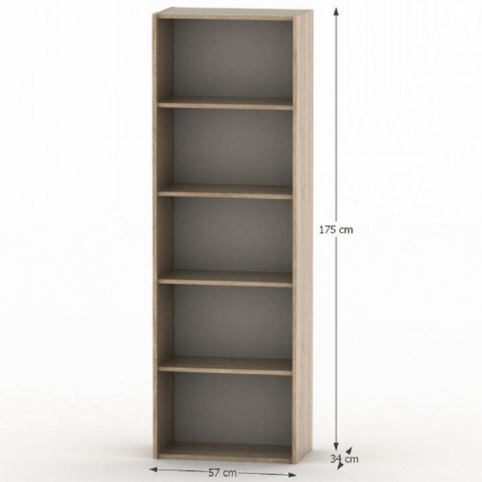 Vysoký policový regál TEMPO ASISTENT NEW 001 Materiálové provedení: DTD laminovaná Barevné provedení: dub sonoma Rozměry (ŠxHxV): 57x34x175 cm Tloušťka materiálu: 16 mm Dodávané v demontu.