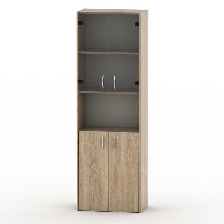 Policová skříňka s dvířky TEMPO ASISTENT NEW 004 Materiálové provedení: DTD laminovaná Barevné provedení: dub sonoma Rozměry (ŠxHxV): 57x34x175 cm Tloušťka materiálu: 16 mm Zámek je jen na dřevotřískových dveřích Dodávané v demontu.