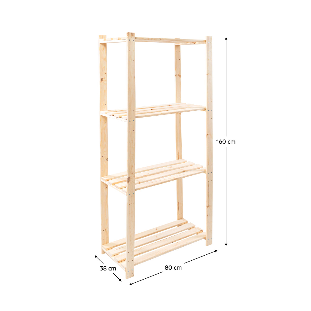 Materiál: borové dřevo Barva: přírodní Rozměry (ŠxHxV): 80x38x160 cm Tloušťka materiálu borovice: 1,6 cm Policový Nosnost na polici: 25 kg Multifunkční Kvalitní slovenský výrobek Bez povrchové úpravy Dodáváno v demontu