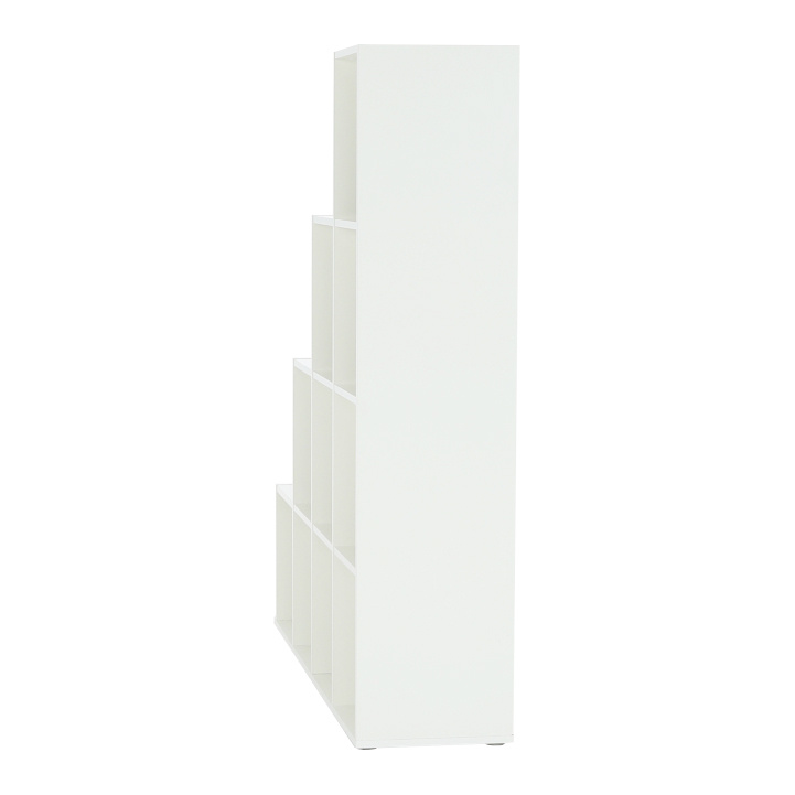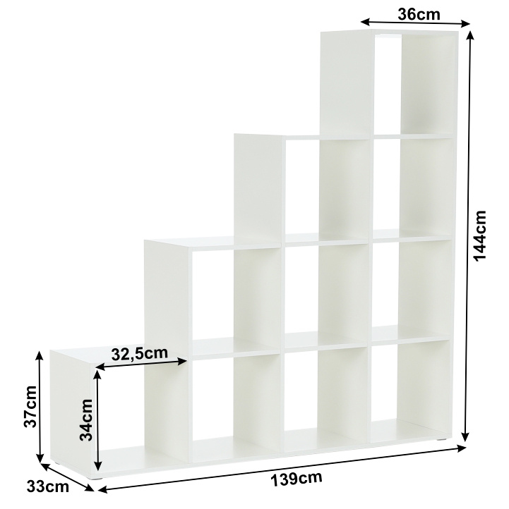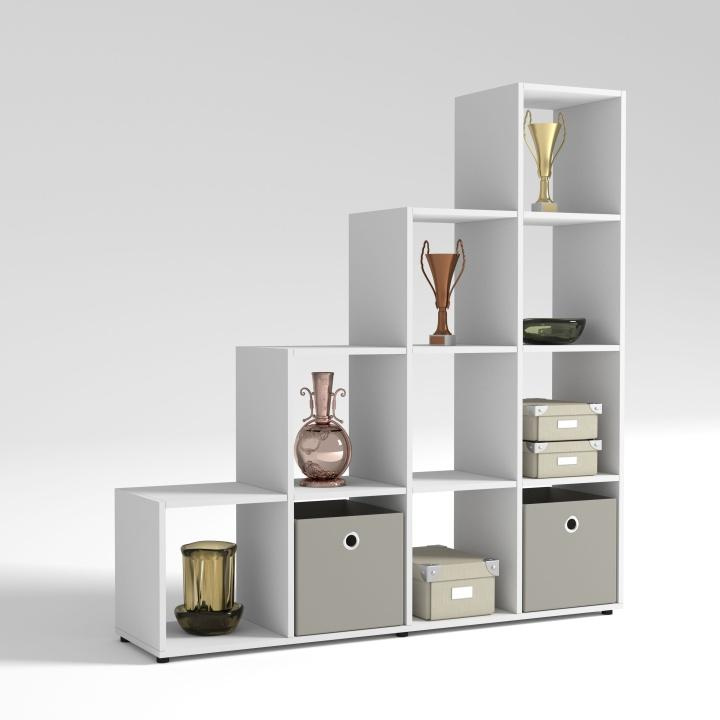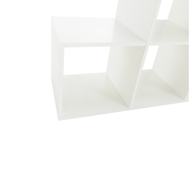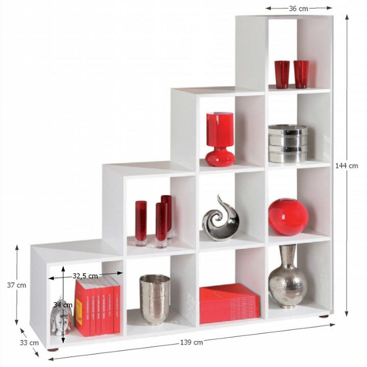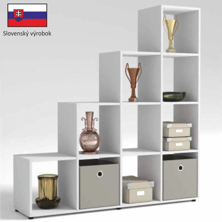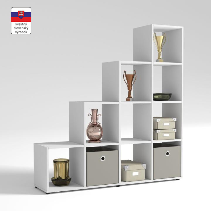 víceúčelový regál v moderním tvaru pyramidy s mnohostranným využitím. Vhodný do obývacího, dětského či studentského pokoje. Využijete ho ale hlavně v kanceláři, ve vaší pracovně, ale iv kuchyni. Je vyroben na Slovensku z kvalitní laminované dřevotřísky o síle lamina 16 mm. Je neutrální bílé barvy a rozměry jsou: ŠxVxH: 139x144x33 cm. Tloušťka materiálu: 16 mm Nosnost police: 5 kg