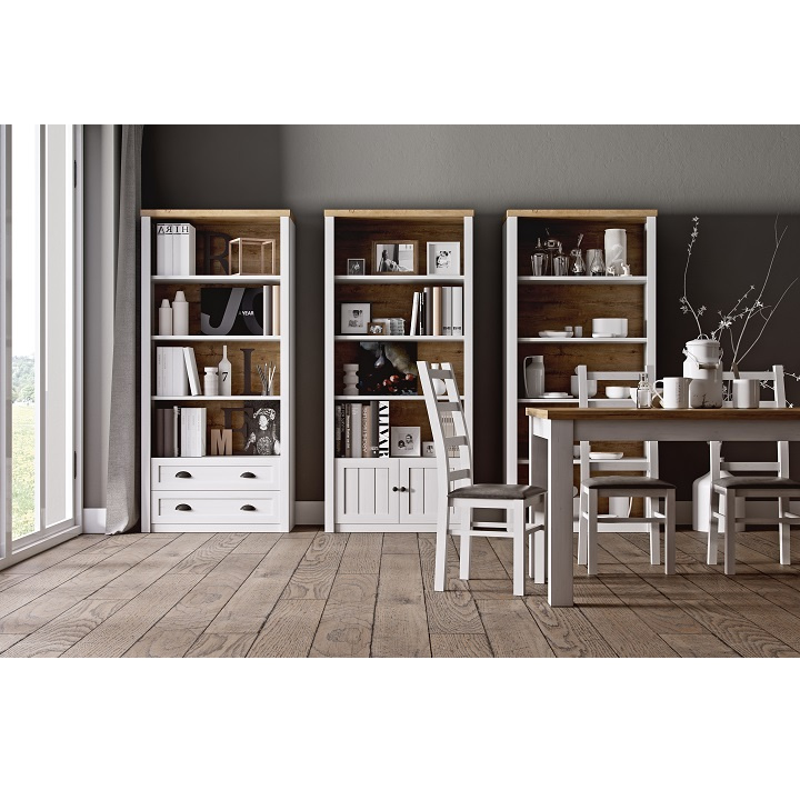 Regál R1 ze sektorového systému PROVANCE v provedení sosna andersen / dub lefkas. Materiál: DTD laminovaná Rozměry (ŠxHxV): 90x43x198 cm Tloušťka materiálu korpus: 15 mm Tloušťka materiálu vrchní desky: 36 mm