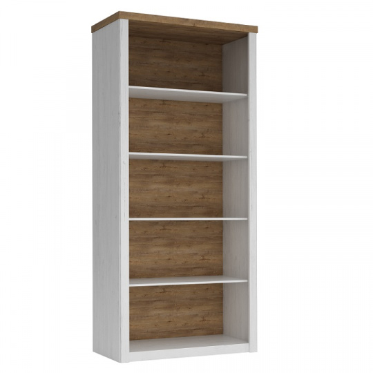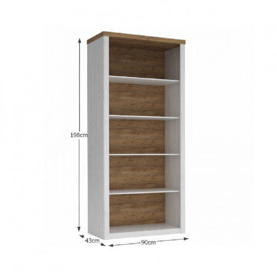 Regál R3 ze sektorového systému PROVENCE v provedení sosna andersen / dub lefkas. Materiál: DTD laminovaná Rozměry (ŠxHxV): 90x43x198 cm Tloušťka materiálu korpus: 15 mm Tloušťka materiálu vrchní desky: 36 mm