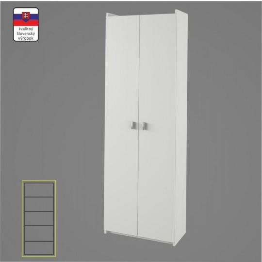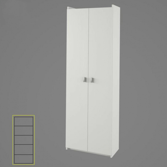 Policová skříň NATALI Materiál: DTD laminovaná Barevné provedení: bílá Rozměry (ŠxHxV): 64x31,8x190 cm Tloušťka materiálu: 16 mm Dodávána v demontu
