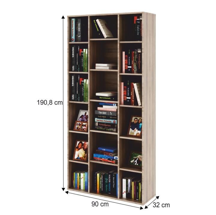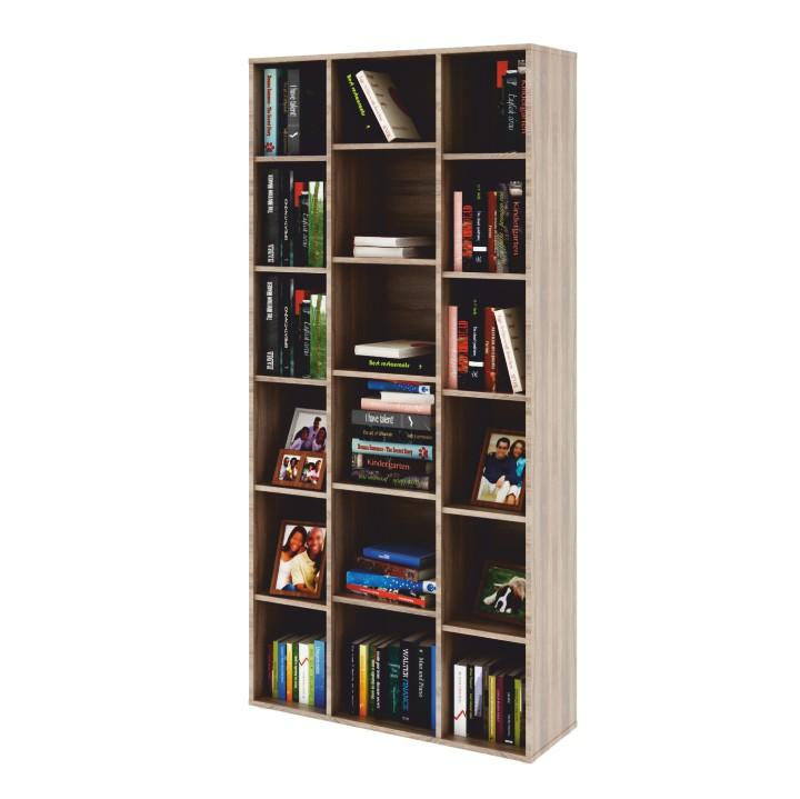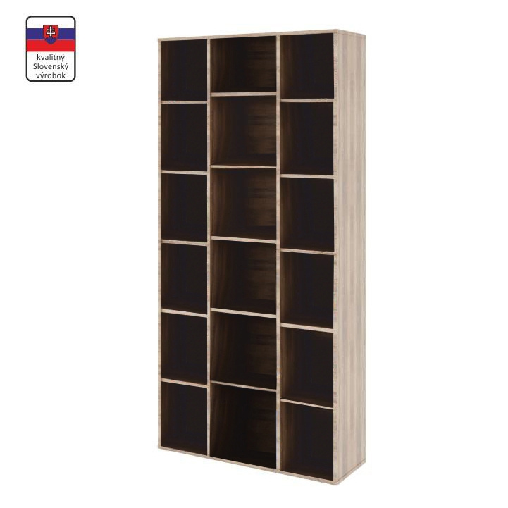 Regál kostka SARAH Materiál: DTD laminovaná Barva: dub sonoma Rozměry (ŠxHxV): 139x33x144 cm Tloušťka materiálu: 16 mm Nosnost police: 5 kg Slovenský výrobek. Hmotnost: 52kg