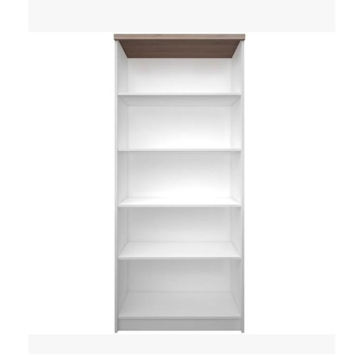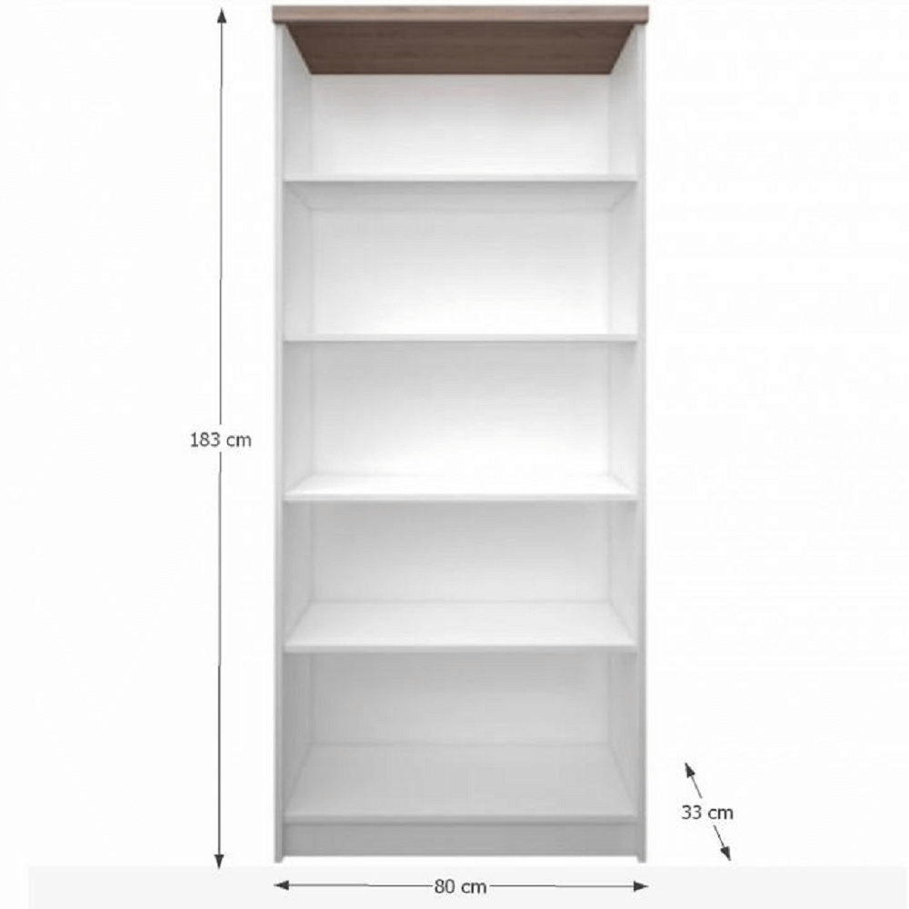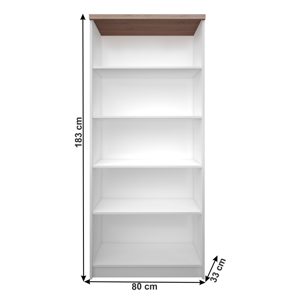 regál otevřený Materiál: DTD laminovaná Provedení: bílá / dub sonoma Rozměry (ŠxHxV): 80x33x183 cm Tloušťka materiálu korpus: 16 mm Tloušťka materiálu vrchní desky: 32 mm Moderní sektorový systém vhodný na zařízení kanceláří, pracoven, obývacích prostorů či předsíní