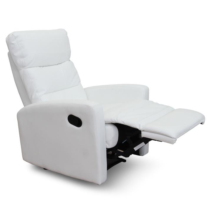Relaxační polohovatelné křeslo. Materiál: ekokůže Oděruodolnost textilie podle testu Martindale: 100 000 oděrek Barva: bílá Rozměry (ŠxHxV): 74x92x104 cm Výška sedu: 47cm Nosnost: 150 kg Hmotnost: 33 kg. Dodávané v demontu.