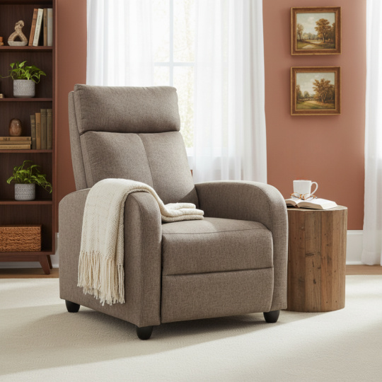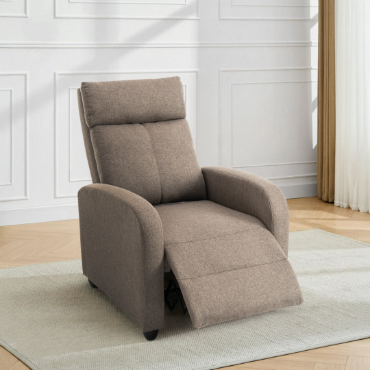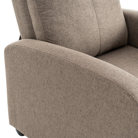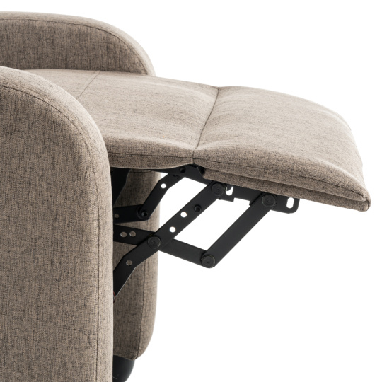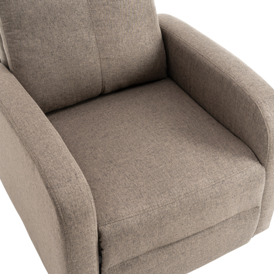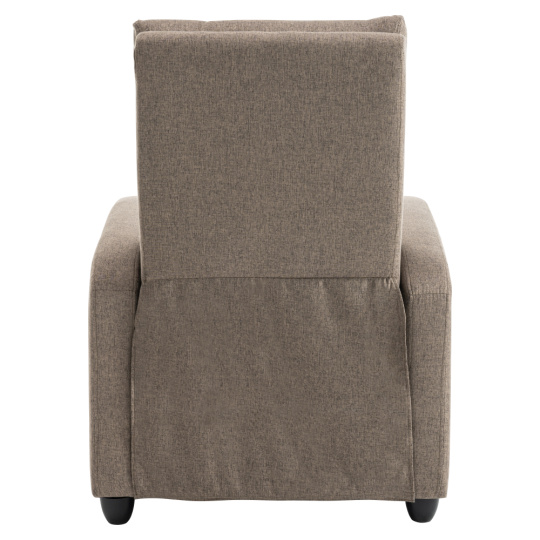 Materiál: látka/plast Barva: hnědá Rozměry křeslo (ŠxHxV): 69x73x99 cm Výška sedu: 45 cm Hloubka sedu: 50,5 cm Výška opěrky na záda: 63 cm Výška opěrky na ruku: 57 cm Šířka opěrky na ruku: 9 cm Výška nožičky: 6 cm Nosnost: 120 kg Polohovací Mechanicky polohovatelné Relaxační Plastové nohy Dodáváno v demontu