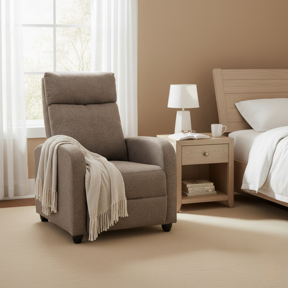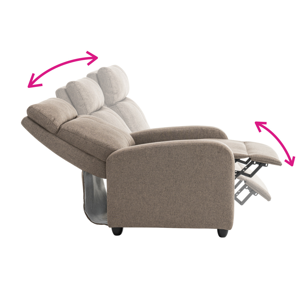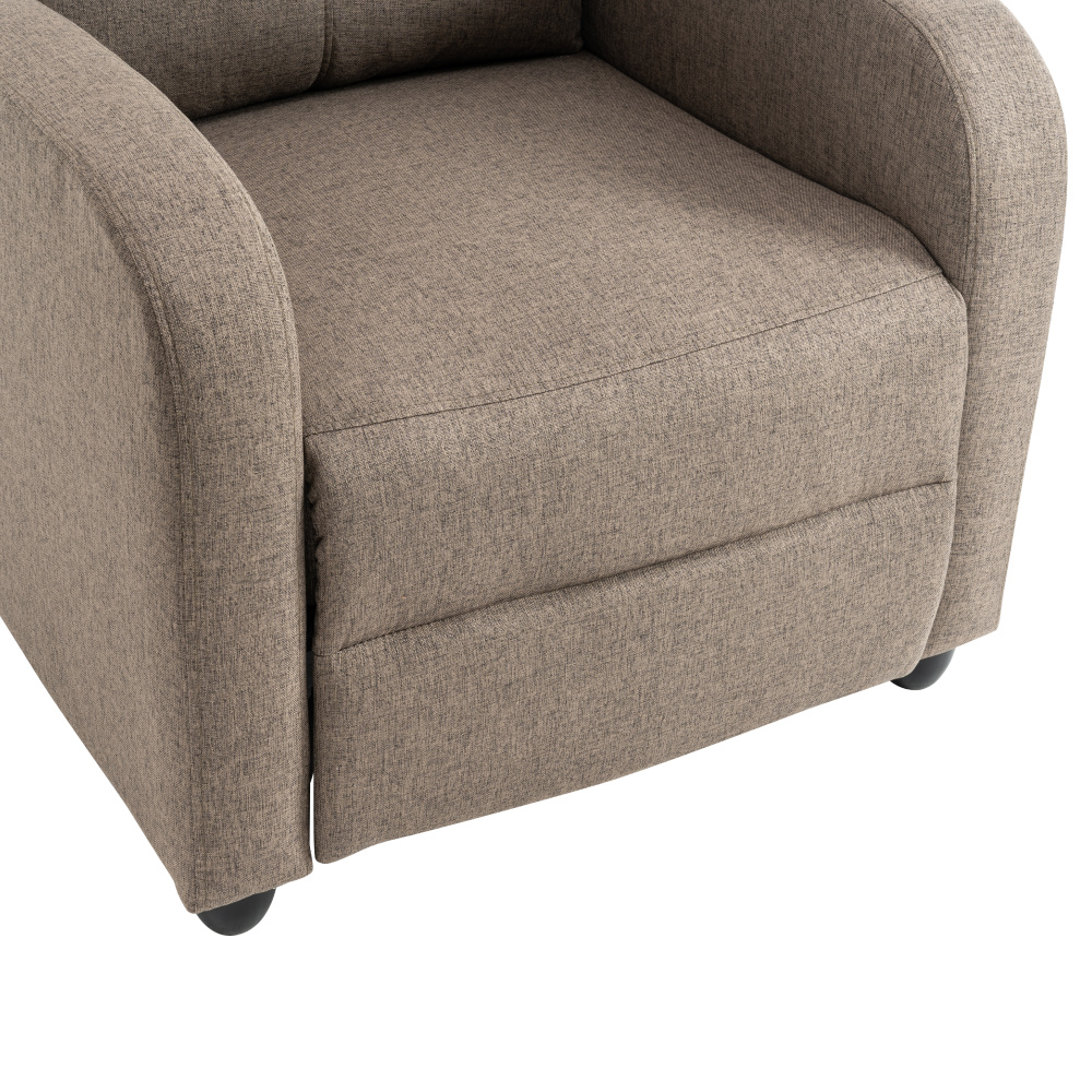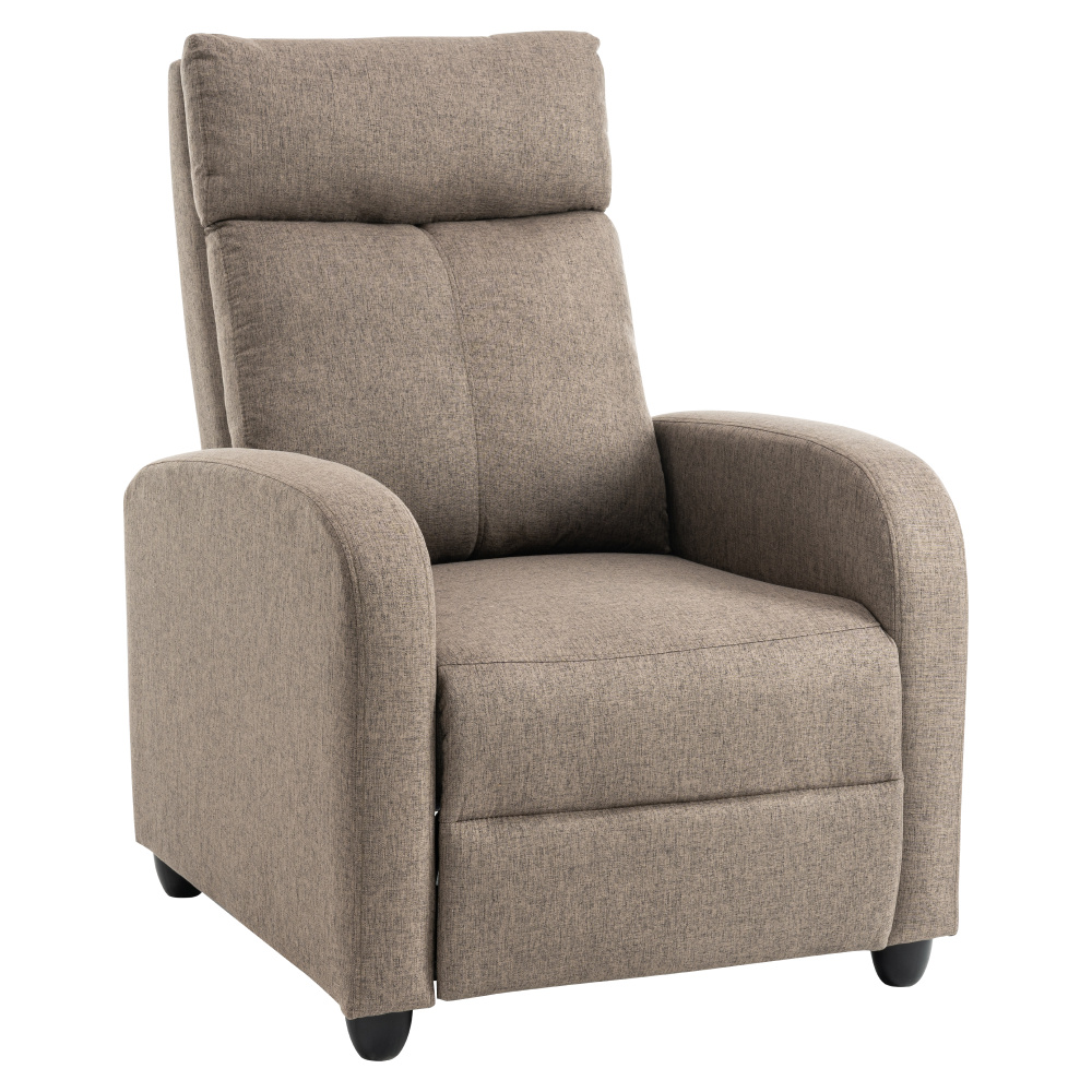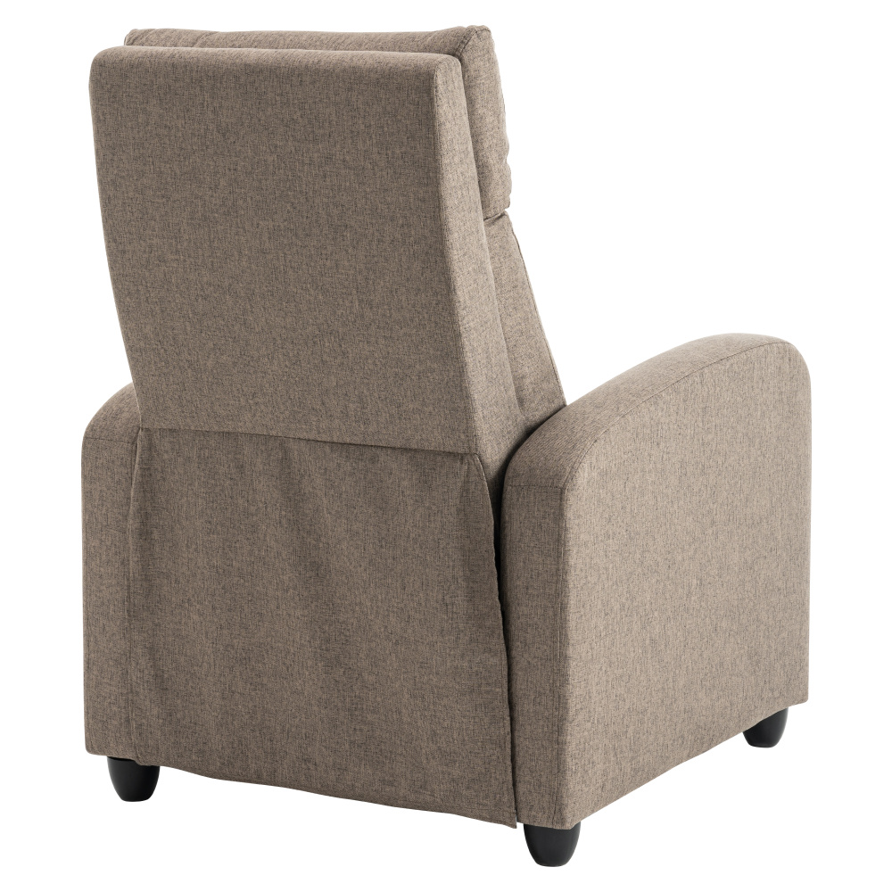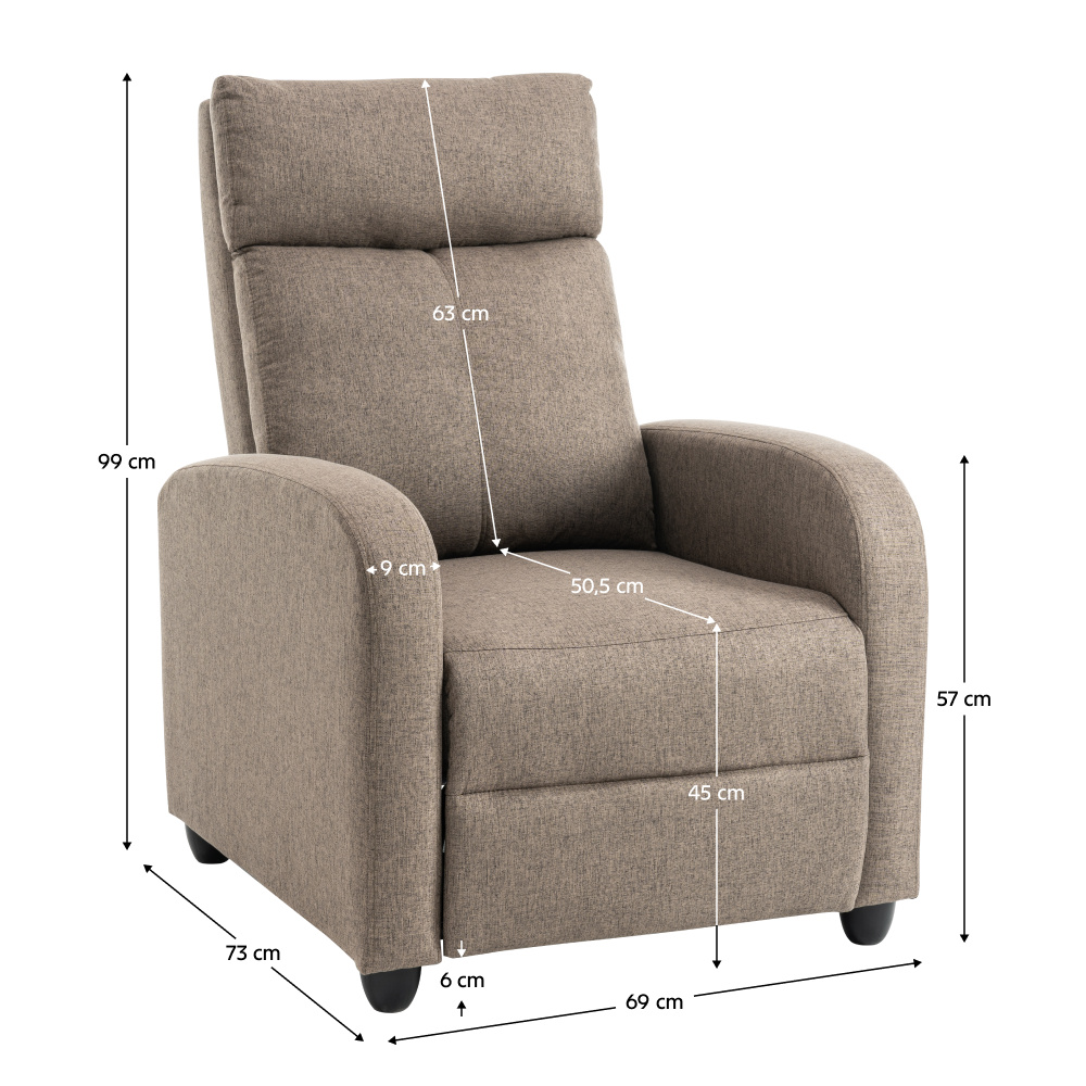 Materiál: látka/plast Barva: hnědá Rozměry křeslo (ŠxHxV): 69x73x99 cm Výška sedu: 45 cm Hloubka sedu: 50,5 cm Výška opěrky na záda: 63 cm Výška opěrky na ruku: 57 cm Šířka opěrky na ruku: 9 cm Výška nožičky: 6 cm Nosnost: 120 kg Polohovací Mechanicky polohovatelné Relaxační Plastové nohy Dodáváno v demontu