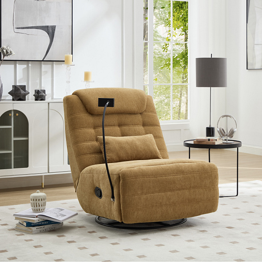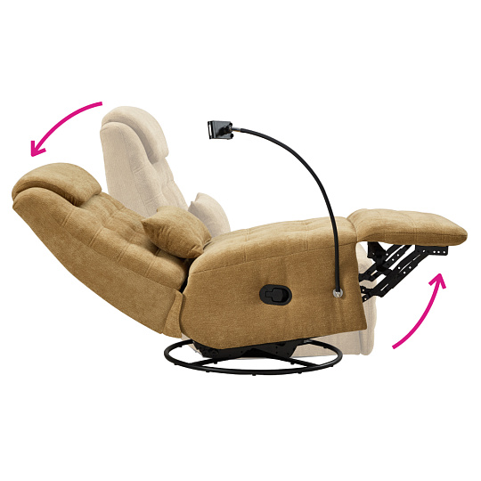 Materiál: látka Oděruodolnost textilie podle testu Martindale: 75 000 oděrů Barva: hořčicová Rozměry křeslo (ŠxHxV): 83x97x102 cm Výška sedu: 47 cm Hloubka sedu: 65 cm Šířka sedu: 83 cm Výška zádové opěrky: 67 cm Šířka zádové opěrky: 83 cm Dodáváno s polštářem Rozměry polštář (ŠxHxV): 50x11,5x24 cm Nosnost: 120 kg Výplň: molitán Otočné Houpací funkce Polohovací Mechanické polohování S držákem na mobil Relaxační Designové Pohodlné Dodáváno v demontu