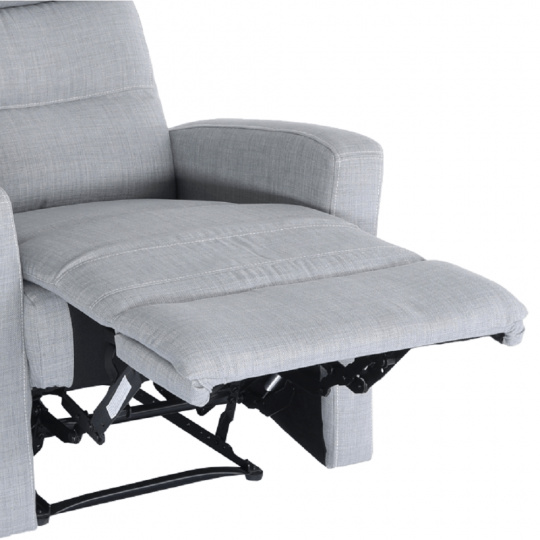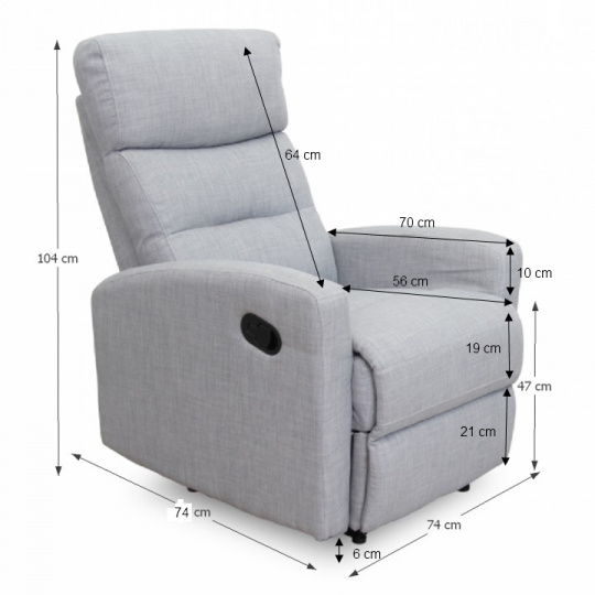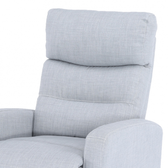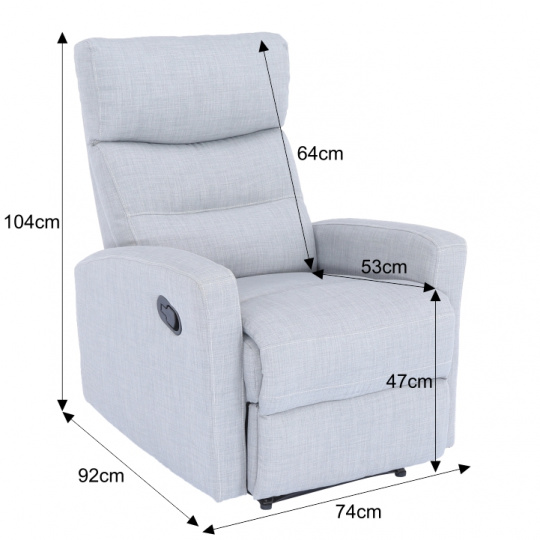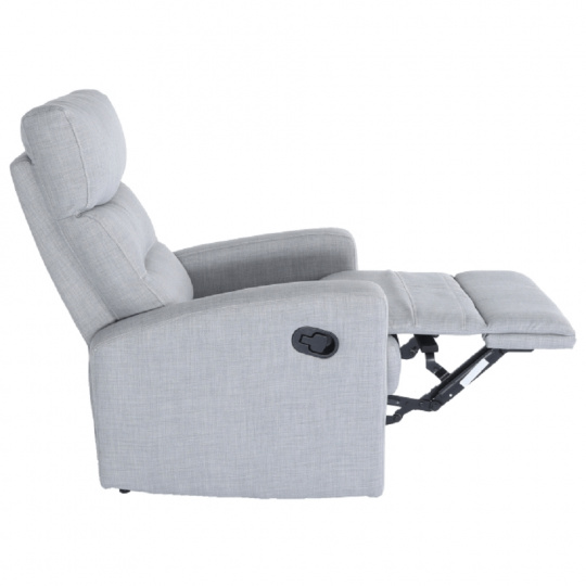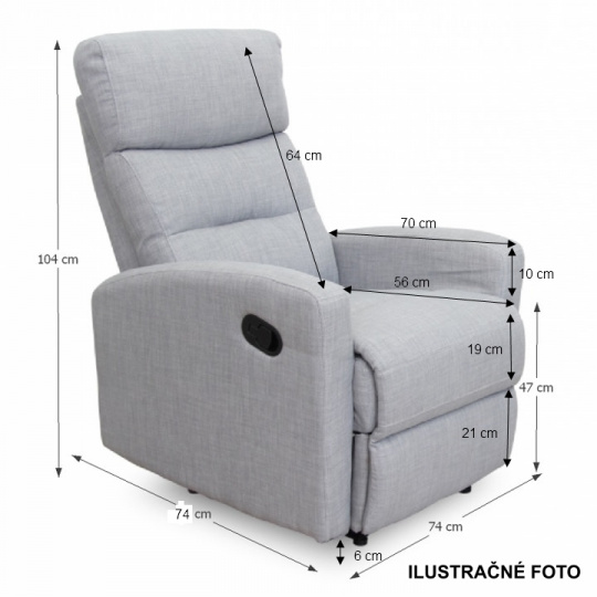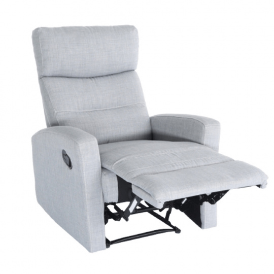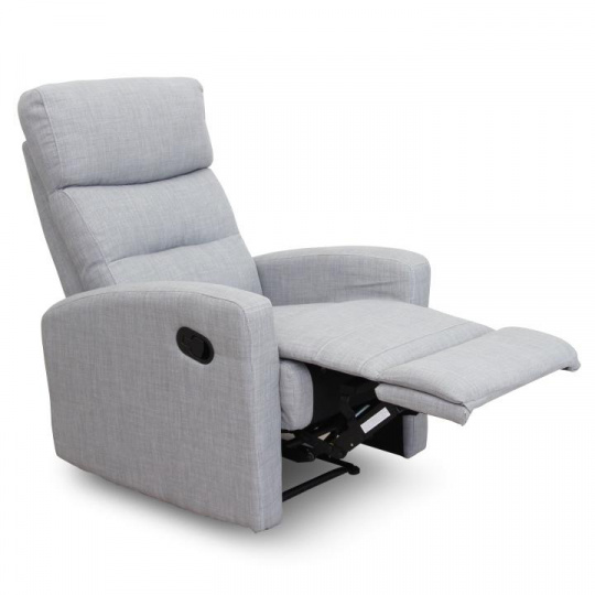 Polohovatelné křeslo SILAS. Provedení: světlešedá látka Oděruodolnost textilie podle testu Martindale: 90 000 oděrek Rozměry (ŠxHxV): 74x92x104 cm, Výška sezení: 47 cm. Nosnost 150 kg.