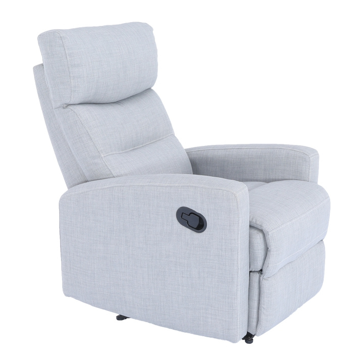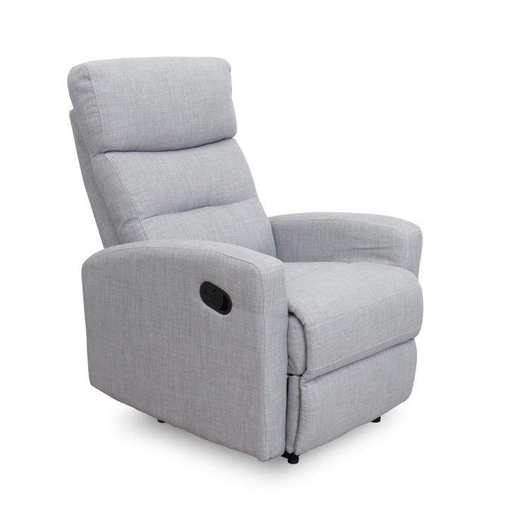 Polohovatelné křeslo SILAS. Provedení: světlešedá látka Oděruodolnost textilie podle testu Martindale: 90 000 oděrek Rozměry (ŠxHxV): 74x92x104 cm, Výška sezení: 47 cm. Nosnost 150 kg.