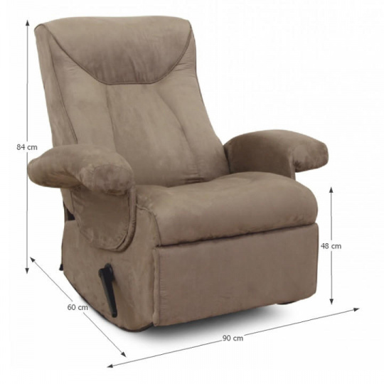 Relaxační křeslo SUAREZ materiál: látka Oděruodolnost textilie podle testu Martindale: 90 000 oděrek barva: šedohnědá Rozměry (ŠxHxV): 90x60x84 / 95 cm Nosnost: 150 kg Dodávána v demontu