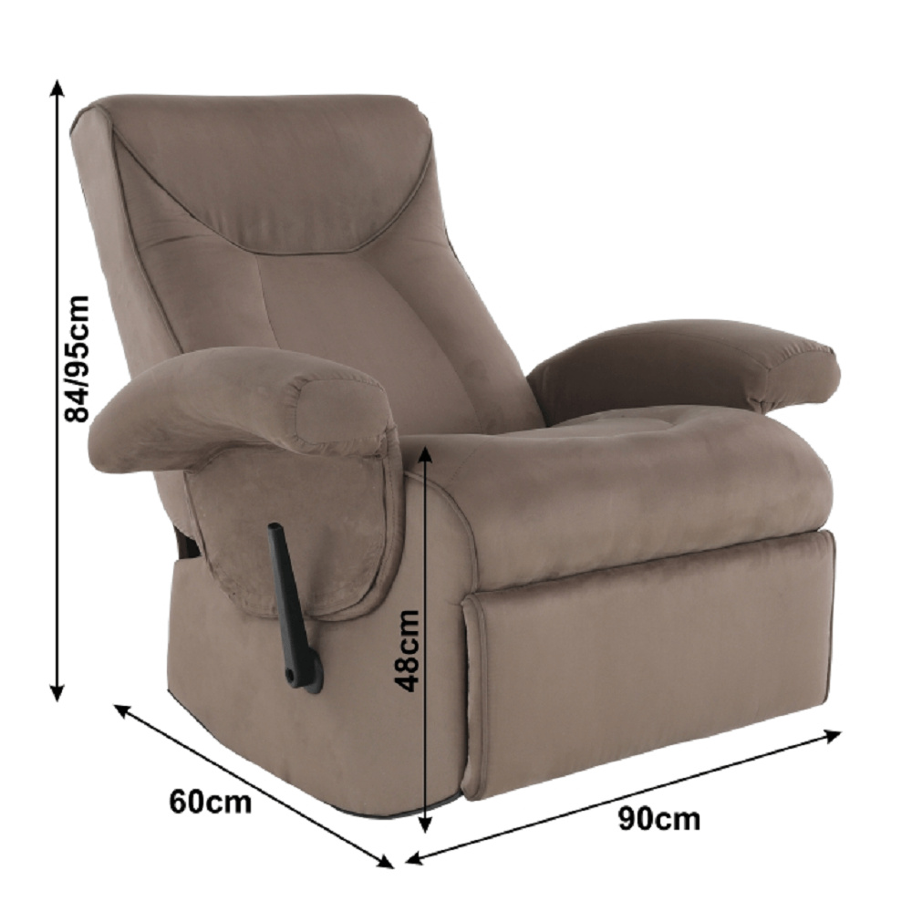 Relaxační křeslo SUAREZ materiál: látka Oděruodolnost textilie podle testu Martindale: 90 000 oděrek barva: šedohnědá Rozměry (ŠxHxV): 90x60x84 / 95 cm Nosnost: 150 kg Dodávána v demontu