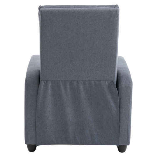 Materiál: látka/plast Barva: šedá Rozměry křeslo (ŠxHxV): 69x73x99 cm Výška sedu: 45 cm Hloubka sedu: 50,5 cm Výška opěrky na záda: 63 cm Výška opěrky na ruku: 57 cm Šířka opěrky na ruku: 9 cm Výška nožičky: 6 cm Nosnost: 120 kg Polohovací Mechanicky polohovatelné Relaxační Plastové nohy Dodáváno v demontu