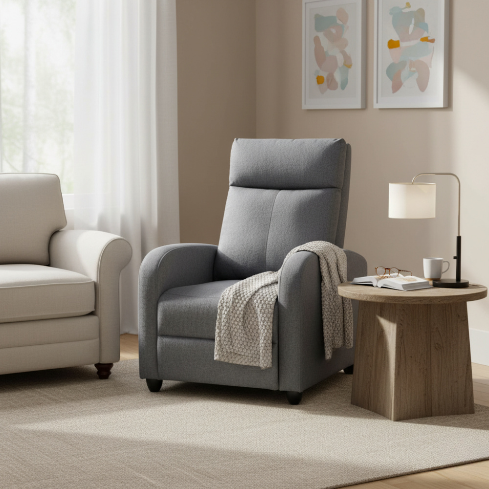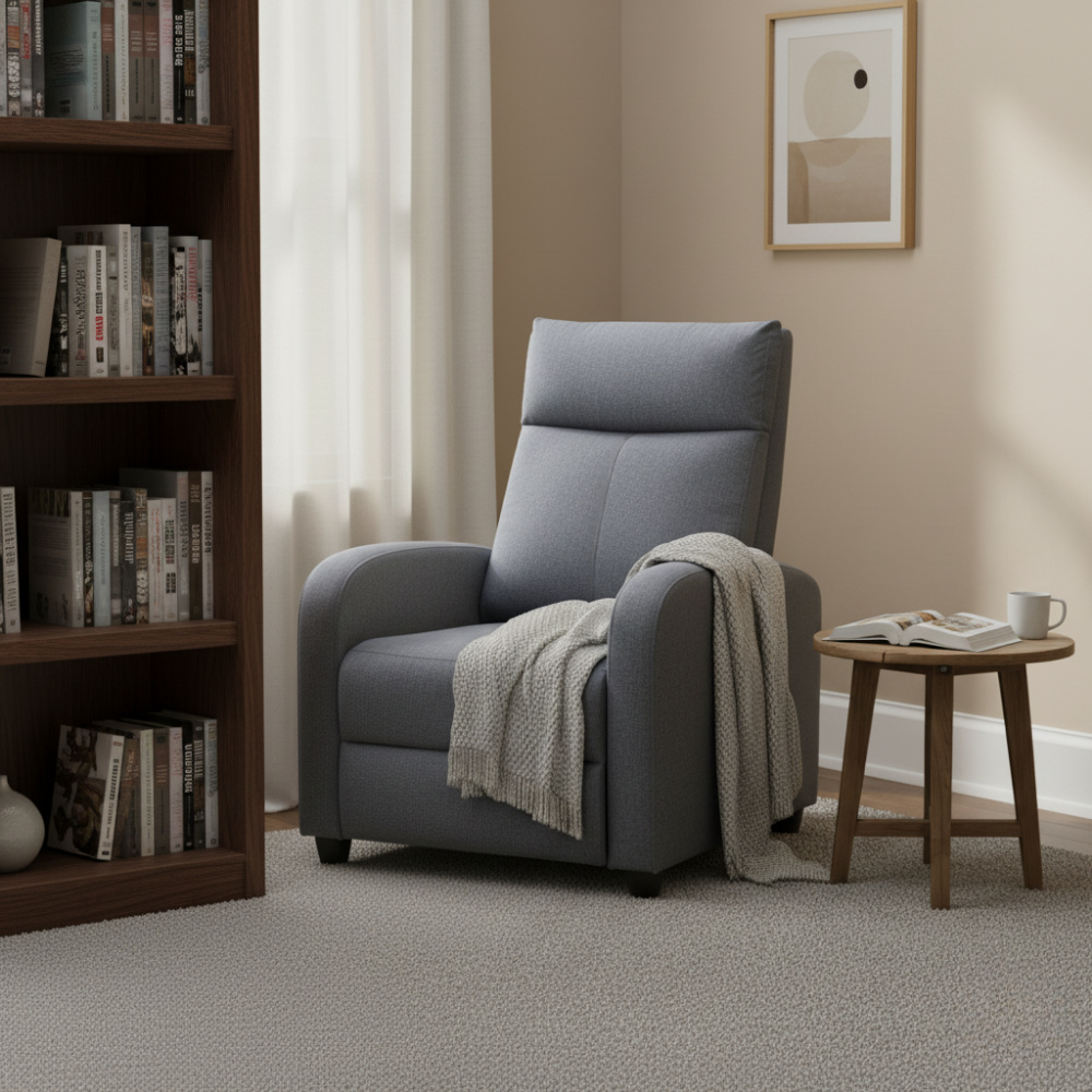 Materiál: látka/plast Barva: šedá Rozměry křeslo (ŠxHxV): 69x73x99 cm Výška sedu: 45 cm Hloubka sedu: 50,5 cm Výška opěrky na záda: 63 cm Výška opěrky na ruku: 57 cm Šířka opěrky na ruku: 9 cm Výška nožičky: 6 cm Nosnost: 120 kg Polohovací Mechanicky polohovatelné Relaxační Plastové nohy Dodáváno v demontu