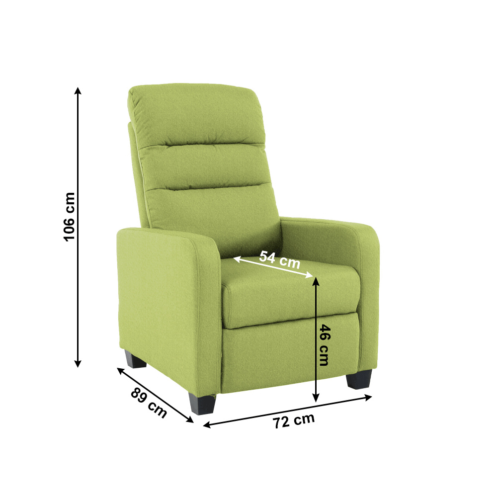 Polohovací, relaxační křeslo TURNER Materiál: látka / plast Oděruodolnost textilie podle testu Martindale: 90 000 oděrek Barva: zelená Rozměry (ŠxHxV): 72x89x106 cm Výška sedu: 46 cm Hloubka sedu: 54 cm Nosnost: 100 kg Dodávané v demontu.