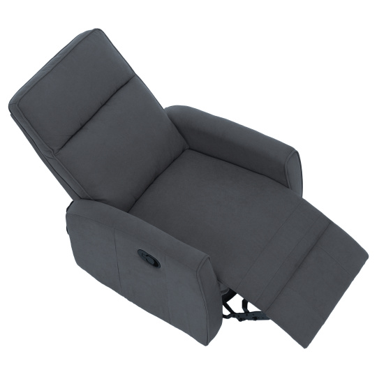 Materiál: bavlněná látka Barva: šedá Rozměry (ŠxHxV): 76x89,5x104 cm Výška sedu: 48 cm Hloubka sedu: 55 cm Výška opěrky zad: 64 cm Rozměr opěrky na ruku (ŠxV): 10x60 cm Nosnost: 120 kg Polohovací Rám z ocelové konstrukce Výplň: pěna Jednoduchý mechanismus pro sklápění opěradla Relaxační Otočné Funkce houpání Dodáváno v demontu