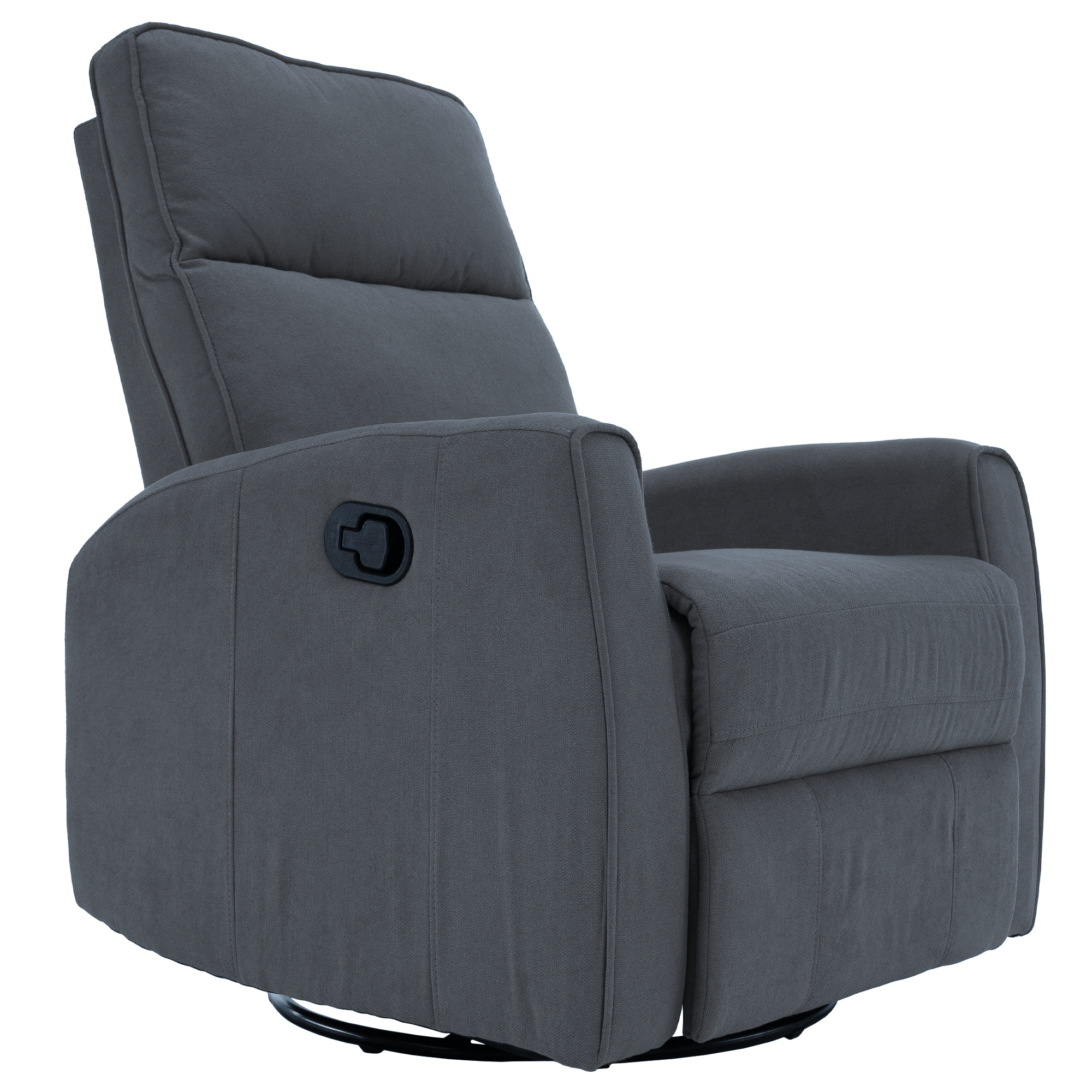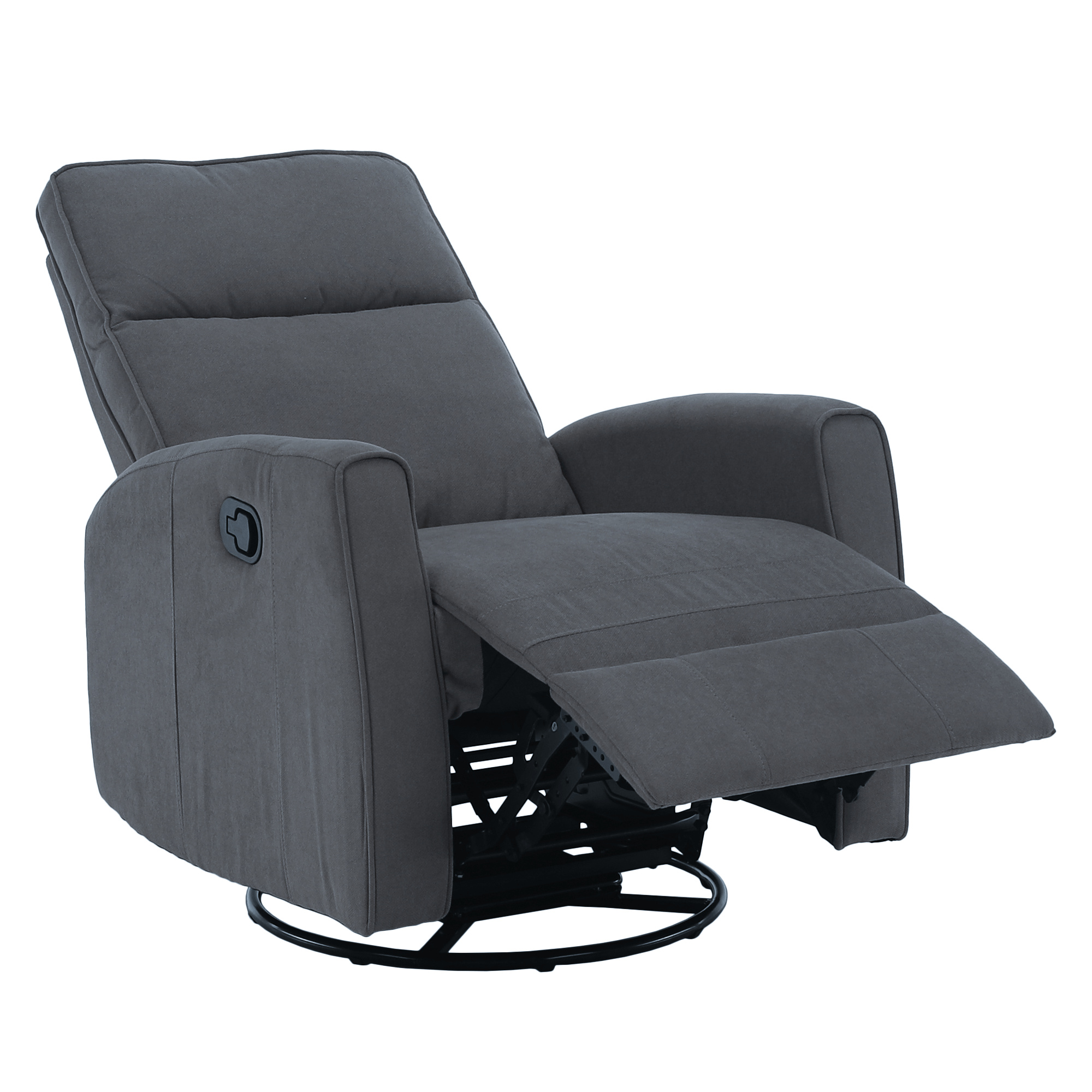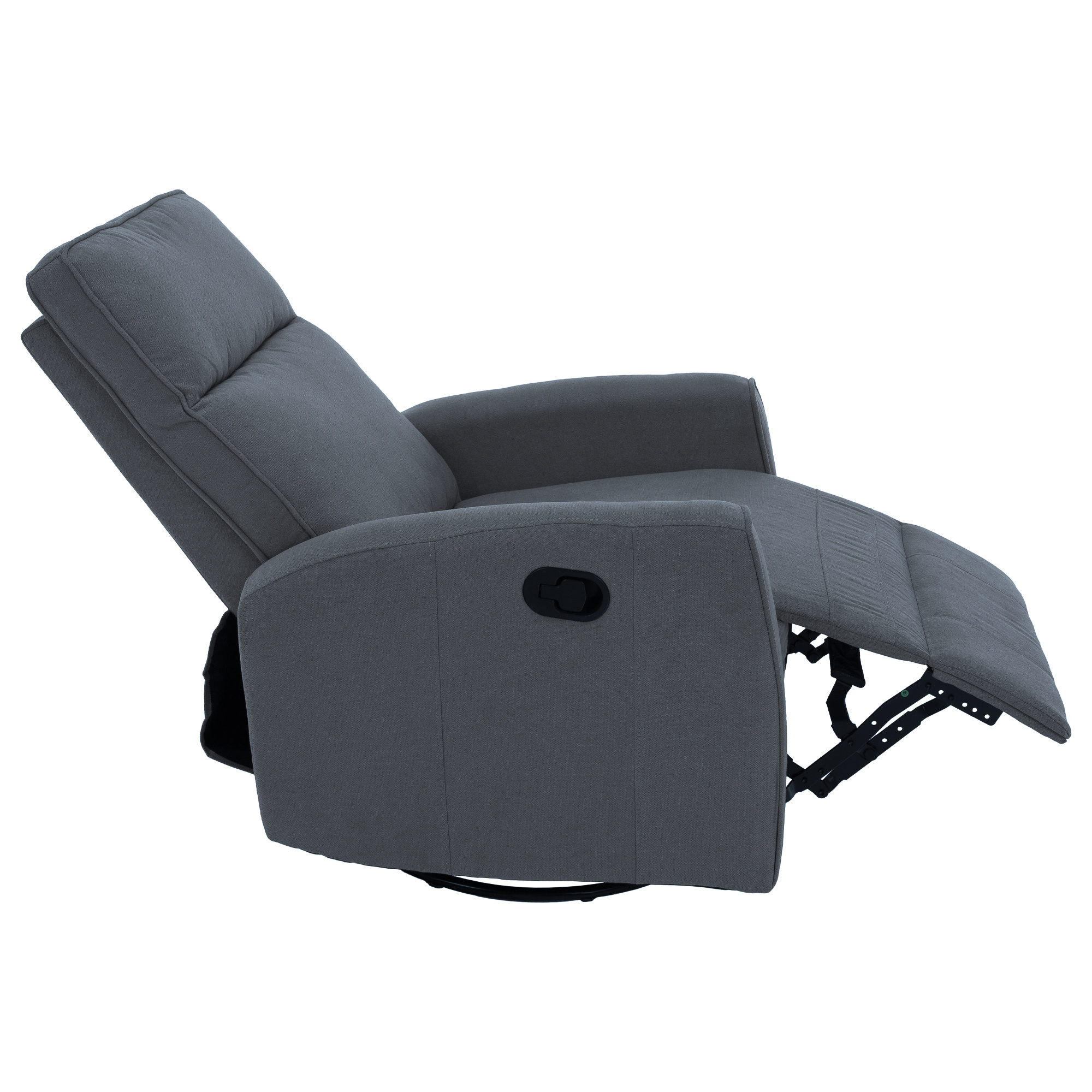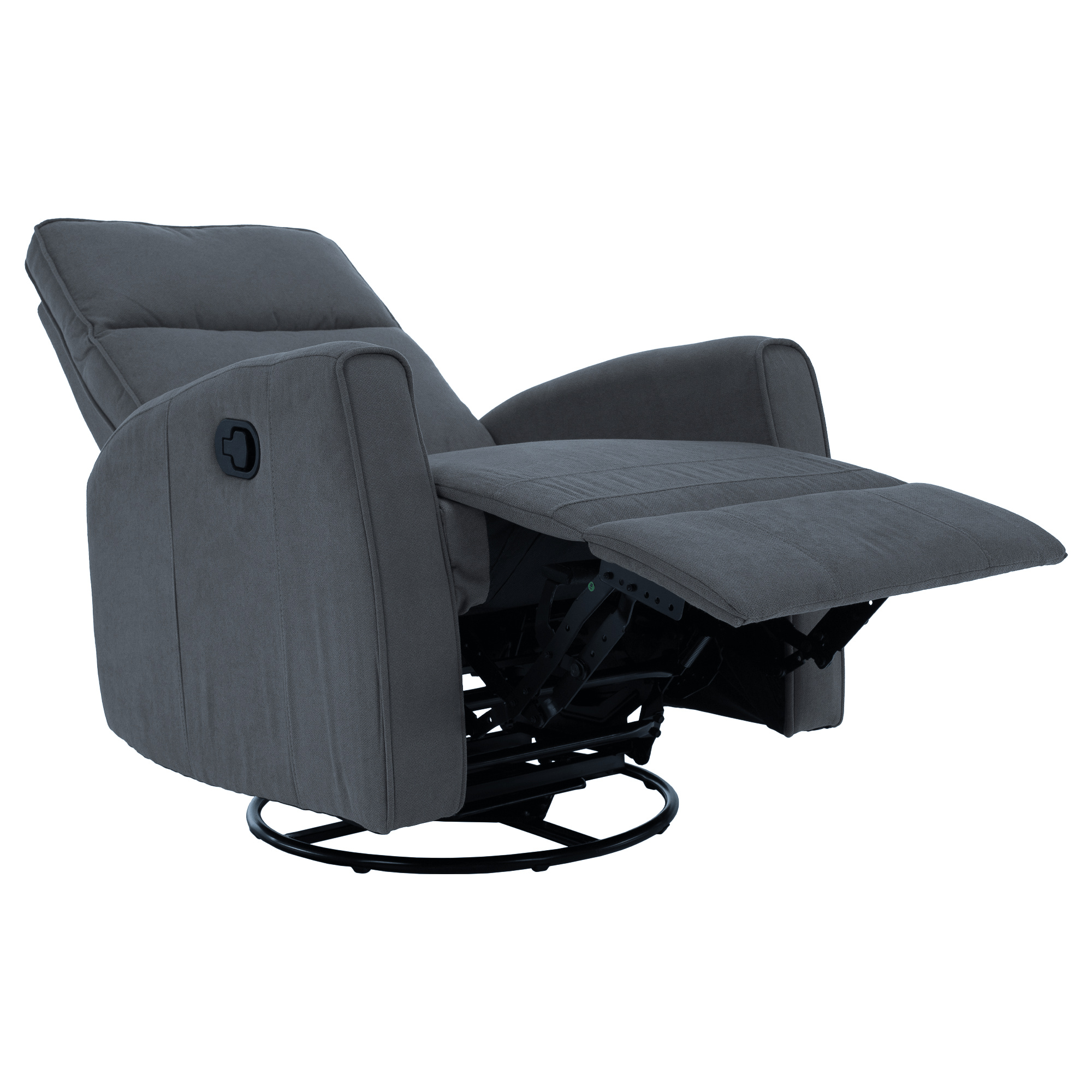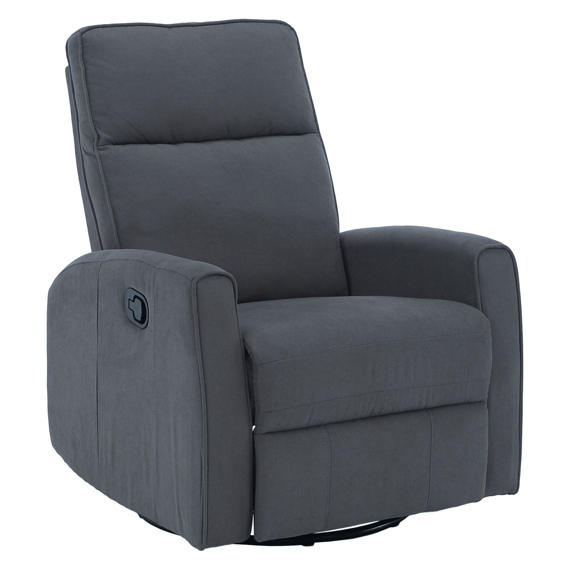 Materiál: bavlněná látka Barva: šedá Rozměry (ŠxHxV): 76x89,5x104 cm Výška sedu: 48 cm Hloubka sedu: 55 cm Výška opěrky zad: 64 cm Rozměr opěrky na ruku (ŠxV): 10x60 cm Nosnost: 120 kg Polohovací Rám z ocelové konstrukce Výplň: pěna Jednoduchý mechanismus pro sklápění opěradla Relaxační Otočné Funkce houpání Dodáváno v demontu