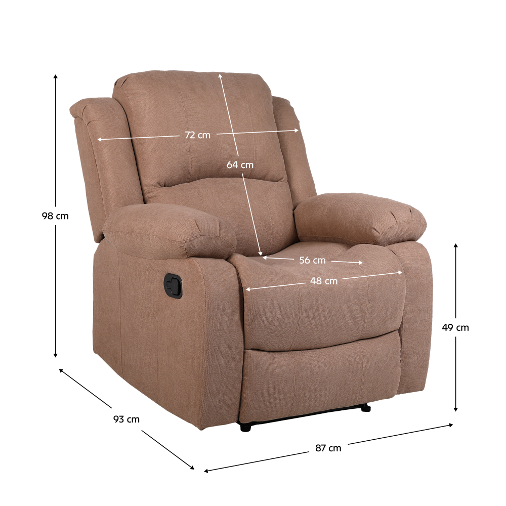 Relaxační polohovací křeslo ASKOY NEW Materiál: látka/dřevo/železo/houba Oděruodolnost textilie podle testu Martindale: 15 000 oděrů Barva: hnědá Rozměry (ŠxHxV): 87x93x98 cm Výška sedu: 49 cm Hloubka sedu: 56 cm Šířka sedu: 48 cm Šířka zádové opěrky: 72 cm Výška zádové opěrky: 64 cm Nosnost: 110 kg Výplň opěradla a područek: polypropylenová bavlna Mechanicky polohovací Relaxační Podnož vysunete pomocí páčky Dodáváno v demontu