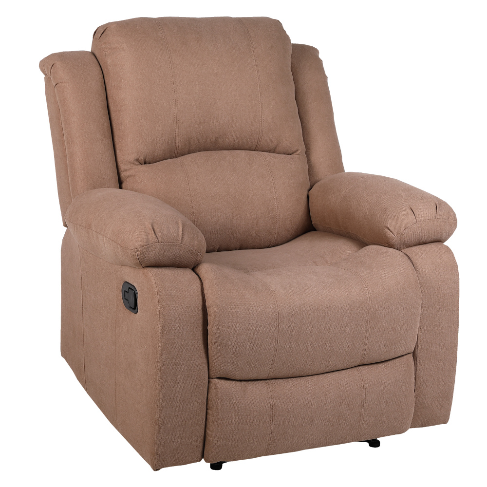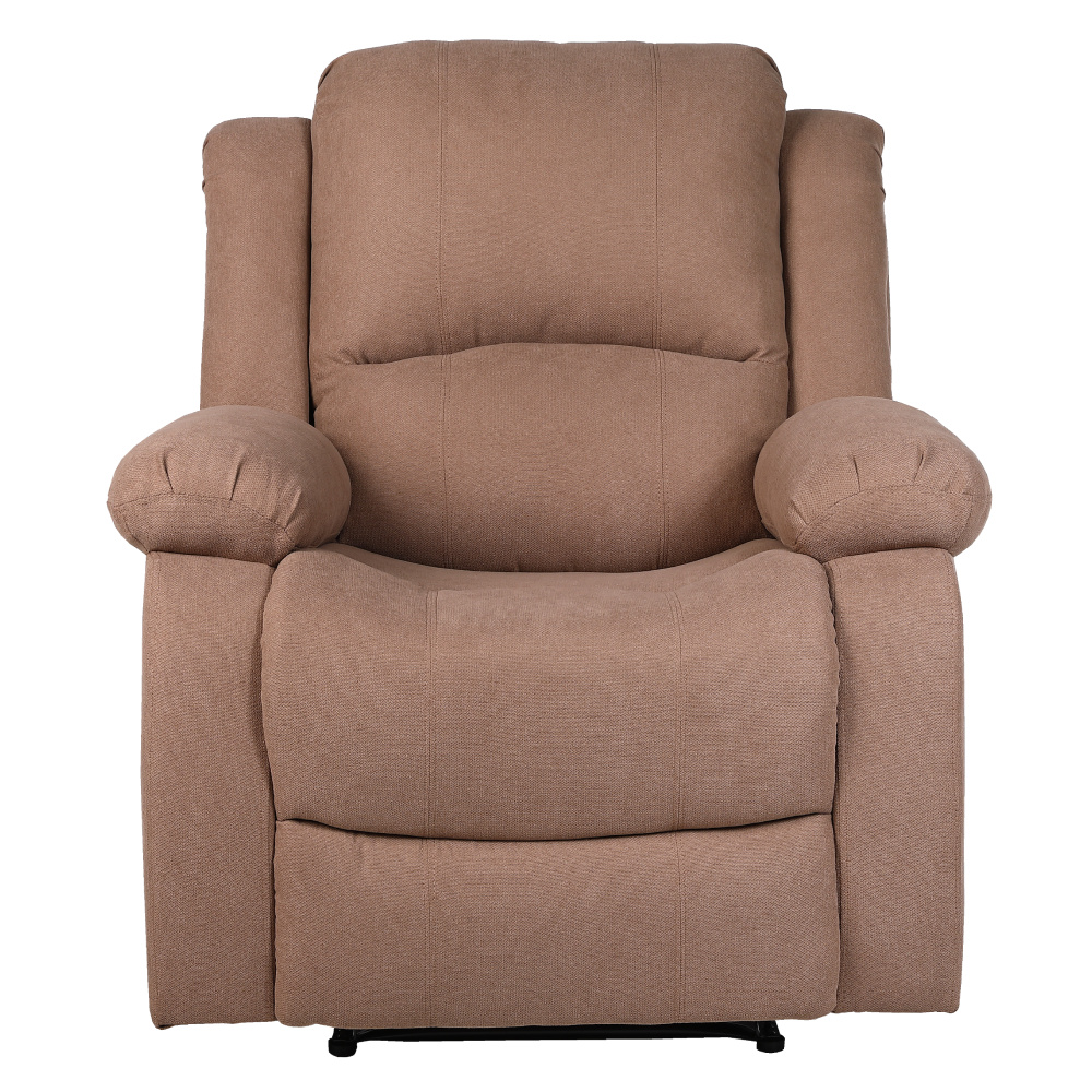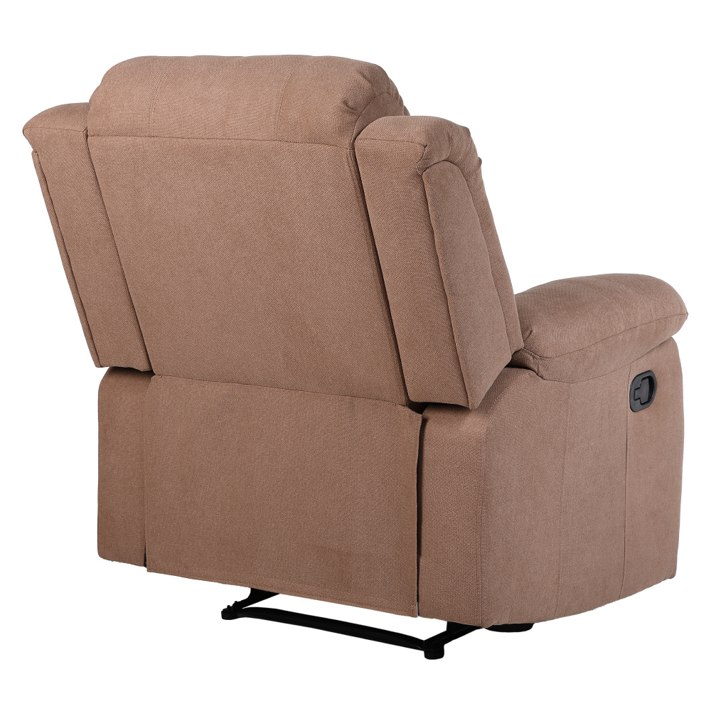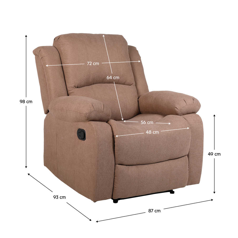 Relaxační polohovací křeslo ASKOY NEW Materiál: látka/dřevo/železo/houba Oděruodolnost textilie podle testu Martindale: 60 000 oděrů Barva: hnědá Rozměry (ŠxHxV): 87x93x98 cm Výška sedu: 49 cm Hloubka sedu: 56 cm Šířka sedu: 48 cm Šířka zádové opěrky: 72 cm Výška zádové opěrky: 64 cm Nosnost: 110 kg Výplň opěradla a područek: polypropylenová bavlna Mechanicky polohovací Relaxační Podnož vysunete pomocí páčky Dodáváno v demontu