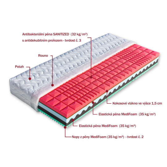| výška včetně potahu | úplet, Aloe Vera | SilverGuard, Lyocell, Medicott, Levandule |