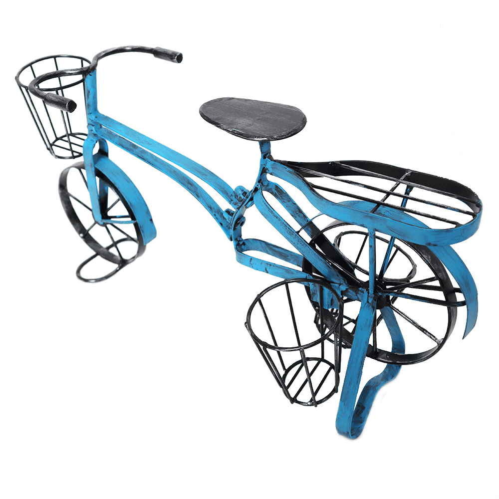 Materiál: kov Barva: černá / modrá Rozměry (ŠxHxV): 42x16x24 cm V retro stylu Se třemi koši na rostliny Vhodný jako dárek Na terasu, balkon, zahradu Dodávané v monte