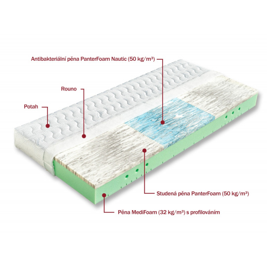 | výška včetně potahu | úplet, Aloe Vera | SilverGuard, Lyocell, Medicott, Levandule |