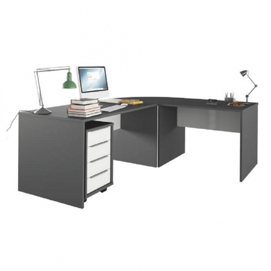 Roh RIOMA NEW TYP 13 k psacím stolům TYP 11 a 12. Sektor vhodný na zařízení kanceláři, pracoven, školních učeben nebo zasedacích místností, Materiál: DTD laminovaná, tloušťka lamina 22 mm. Barevné provedení: grafit, Rozměry (ŠxVxH): 80x2,2x80cm. Tloušťka materiálu: 22 mm Možnost vyskládání si sestavy podle vlastních představ. Dodávané v demontu.