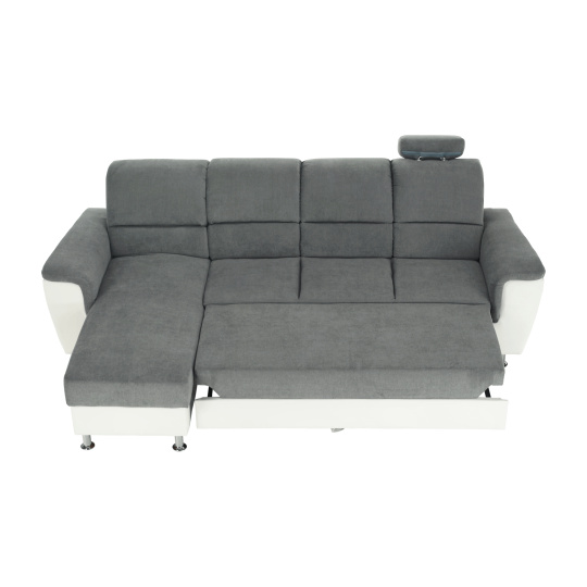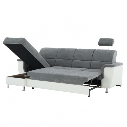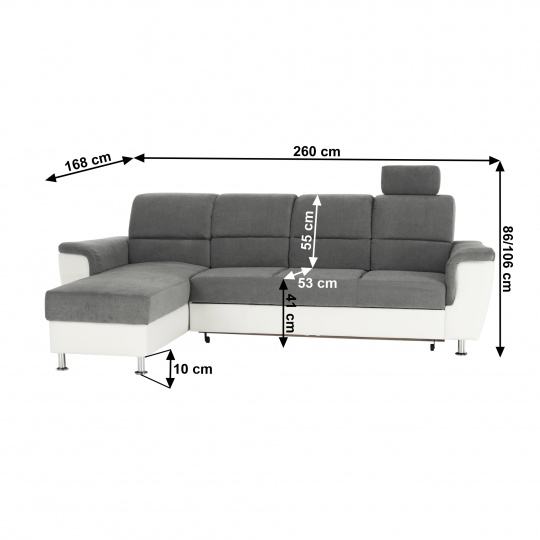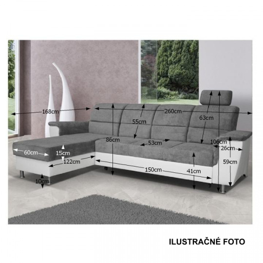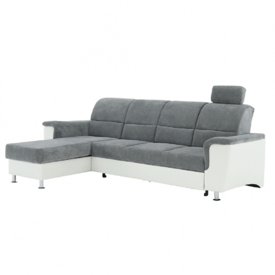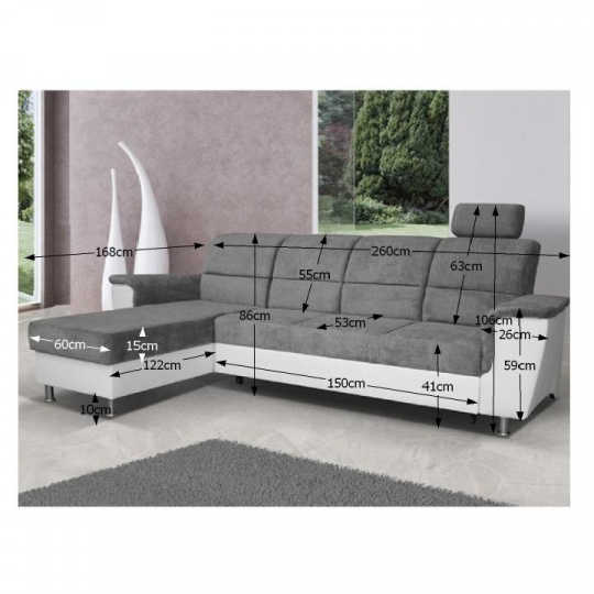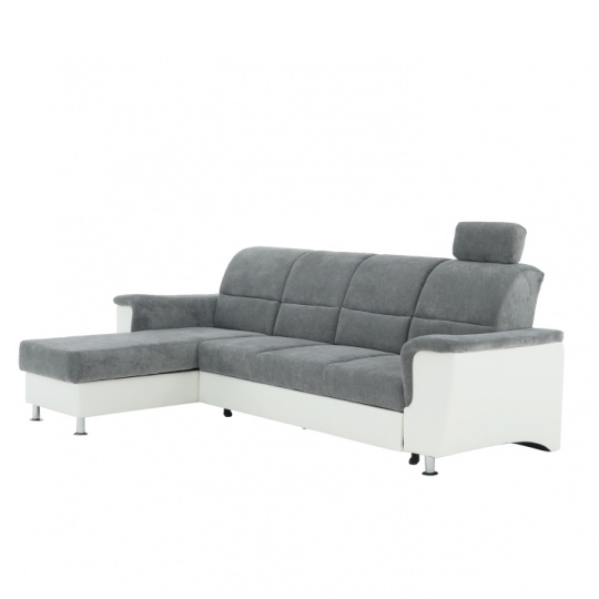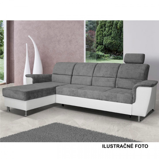 ;"Celočalouněná rohová rozkládací sedací souprava, levá, SANTIAGO ROH MALÝ Materiál: ekokůže / látka Oděruodolnost textilie Matrix podle testu Martindale: 72 000 oděrek Oděruodolnost ekokůže podle testu Martindale: 100 000 oděrek Barva: bílá / Matrix 16 šedá Kovové nožičky s povrchovou úpravou chrom. Rozměry (ŠxHxV): 260x168x86 / 106 cm Plocha na spaní (ŠxD): 116x200 cm Výška sedu: 41 cm Hloubka sedu: 53 cm Nosnost na osobu: 90 kg Manuální systém rozkladu Výška spodního prostoru od podlahy: 10 cm Dodávané v demontu. Možnost objednání v 6 barevných provedeních látky Matrix a v 6 provedeních ekokůže v ceně: malý roh - 26.190 Kč, křeslo - 9.890 Kč, taburet - 3.290 Kč. Při individuální objednávce je třeba zaplatit 20% zálohu z dané částky. Po uhrazení zálohy bude Váš požadavek zadán do výroby. Doba dodání 6-8 týdnů. Váš výběr poznamenejte do poznámky v objednávce.