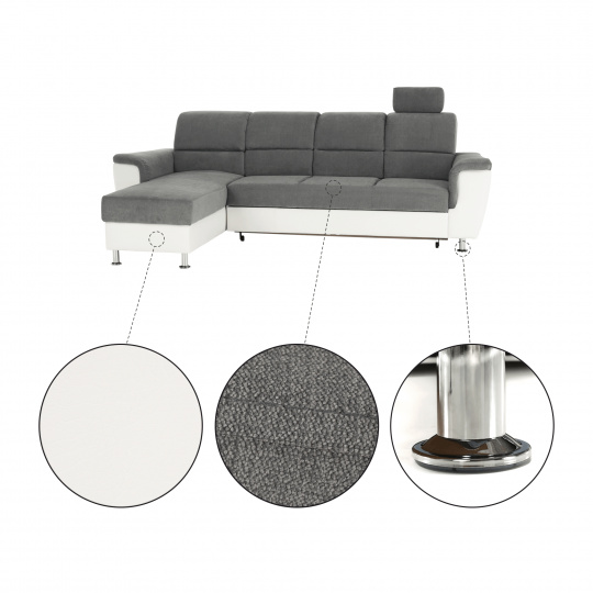 Roh malý, ekokůže bílá / látka šedá, levá, SANTIAGO