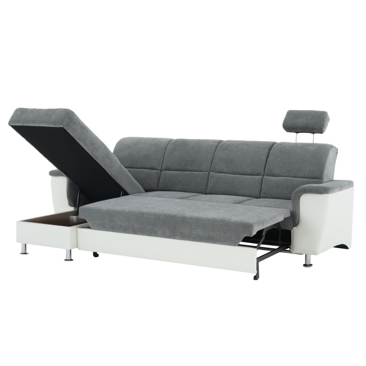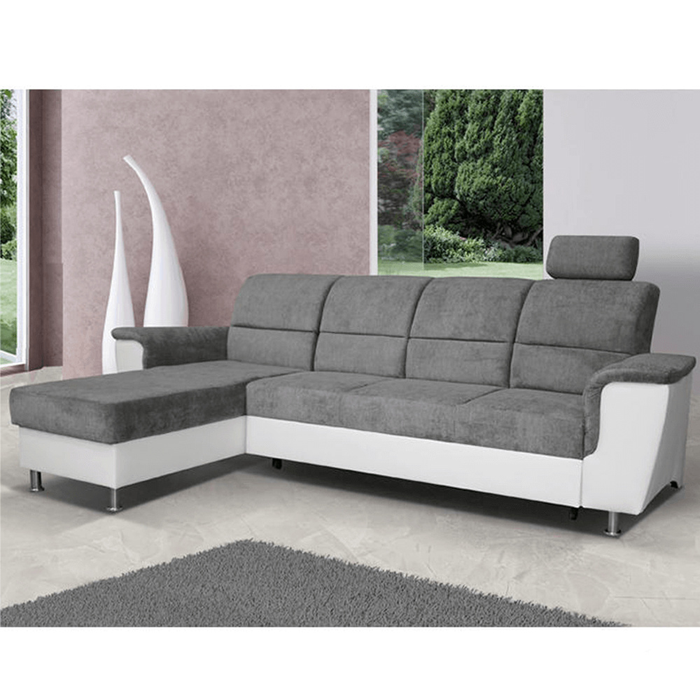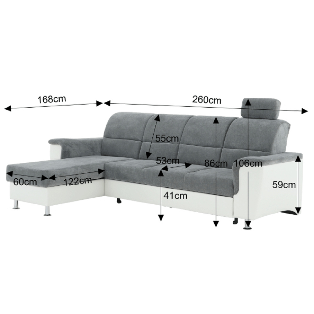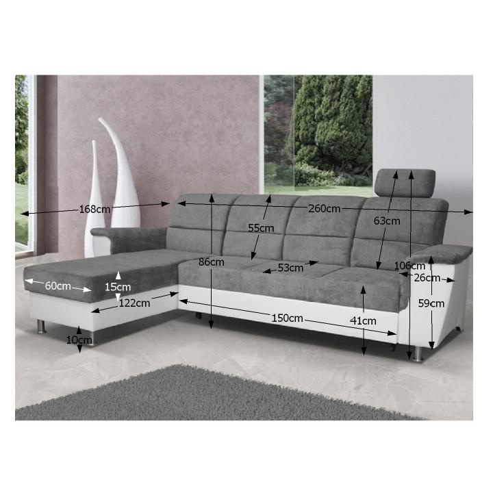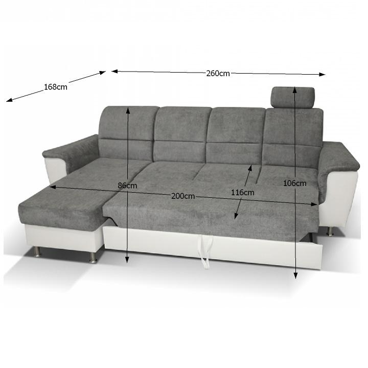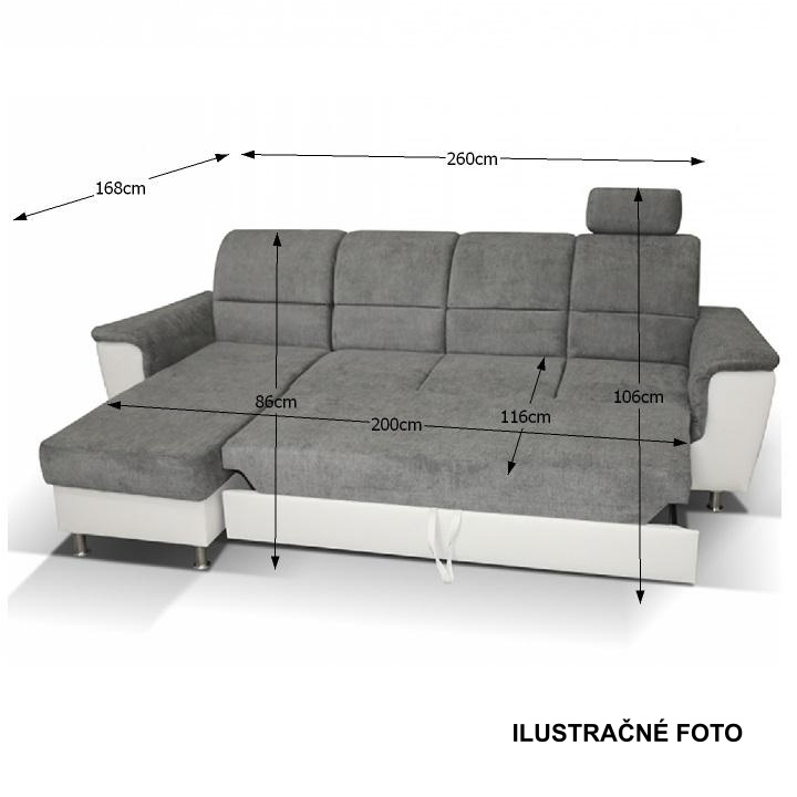 ;"Celočalouněná rohová rozkládací sedací souprava, levá, SANTIAGO ROH MALÝ Materiál: ekokůže / látka Oděruodolnost textilie Matrix podle testu Martindale: 72 000 oděrek Oděruodolnost ekokůže podle testu Martindale: 100 000 oděrek Barva: bílá / Matrix 16 šedá Kovové nožičky s povrchovou úpravou chrom. Rozměry (ŠxHxV): 260x168x86 / 106 cm Plocha na spaní (ŠxD): 116x200 cm Výška sedu: 41 cm Hloubka sedu: 53 cm Nosnost na osobu: 90 kg Manuální systém rozkladu Výška spodního prostoru od podlahy: 10 cm Dodávané v demontu. Možnost objednání v 6 barevných provedeních látky Matrix v ceně: roh - 26.990 Kč, křeslo - 10.190 Kč, taburet - 3.390 Kč. Při individuální objednávce je třeba zaplatit 20% zálohu z dané částky. Po uhrazení zálohy bude Váš požadavek zadán do výroby. Doba dodání 6-8 týdnů. Váš výběr poznamenejte do poznámky v objednávce.