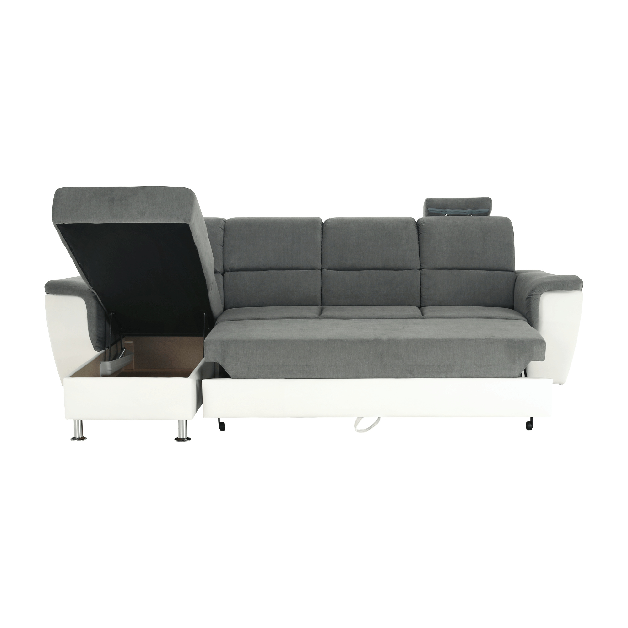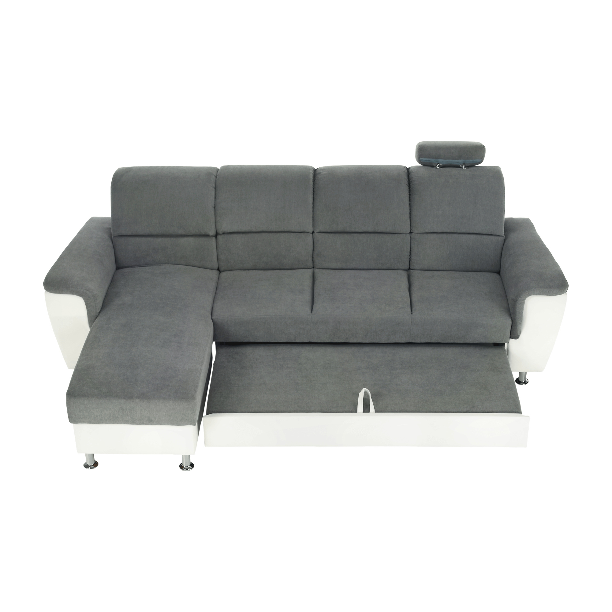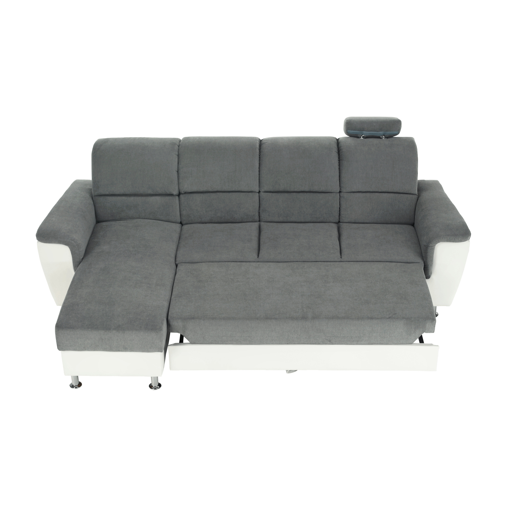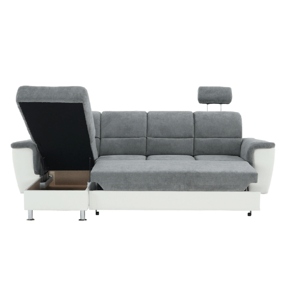 ;"Celočalouněná rohová rozkládací sedací souprava, levá, SANTIAGO ROH MALÝ Materiál: ekokůže / látka Oděruodolnost textilie Matrix podle testu Martindale: 72 000 oděrek Oděruodolnost ekokůže podle testu Martindale: 100 000 oděrek Barva: bílá / Matrix 16 šedá Kovové nožičky s povrchovou úpravou chrom. Rozměry (ŠxHxV): 260x168x86 / 106 cm Plocha na spaní (ŠxD): 116x200 cm Výška sedu: 41 cm Hloubka sedu: 53 cm Nosnost na osobu: 90 kg Manuální systém rozkladu Výška spodního prostoru od podlahy: 10 cm Dodávané v demontu. Možnost objednání v 6 barevných provedeních látky Matrix v ceně: roh - 26.990 Kč, křeslo - 10.190 Kč, taburet - 3.390 Kč. Při individuální objednávce je třeba zaplatit 20% zálohu z dané částky. Po uhrazení zálohy bude Váš požadavek zadán do výroby. Doba dodání 6-8 týdnů. Váš výběr poznamenejte do poznámky v objednávce.