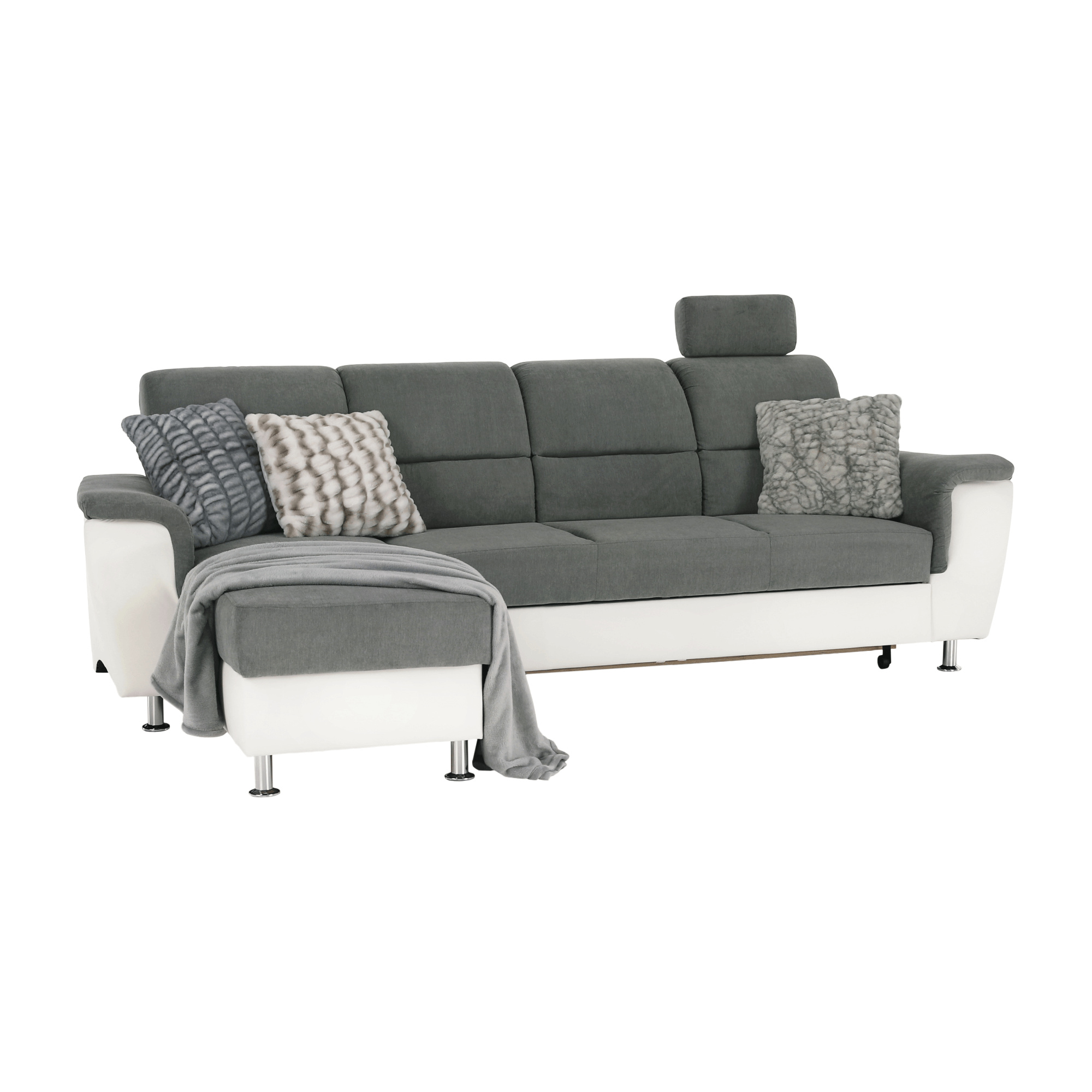 Roh malý, ekokůže bílá / látka šedá, levá, SANTIAGO