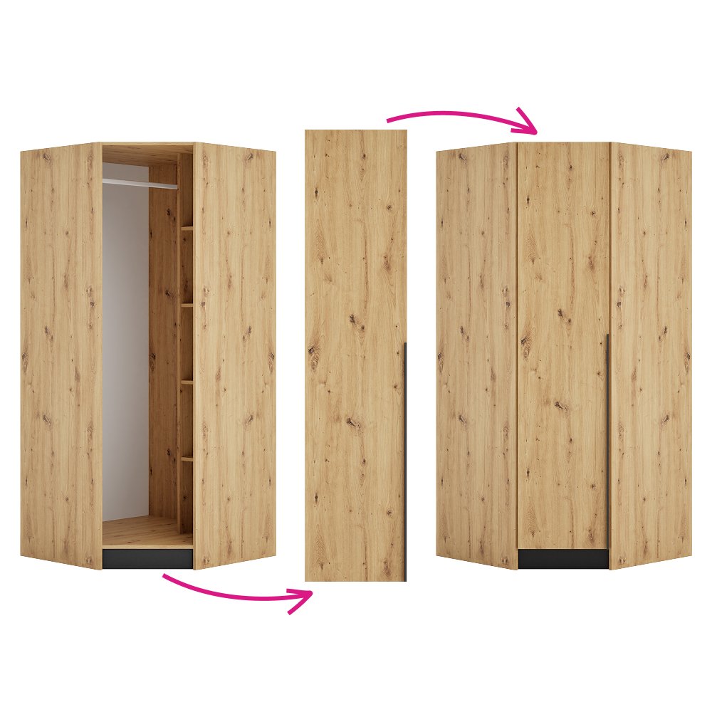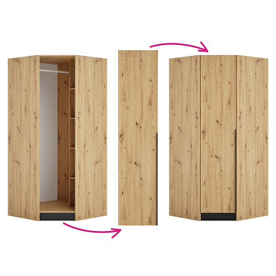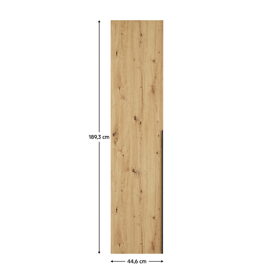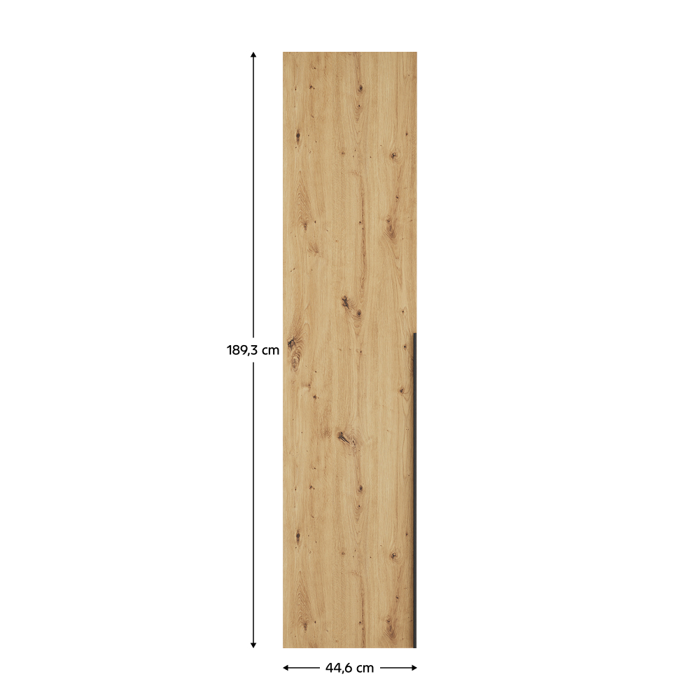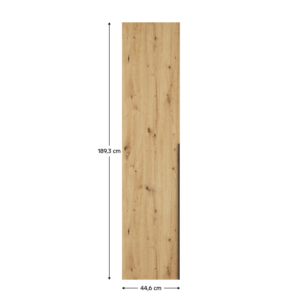 Materiál: laminovaná DTD/ABS hrany Barva: dub artisan Rozměry (ŠxHxV): 44,6x1,6x189,3 cm Tloušťka materiálu DTD: 1,6 cm Tloušťka materiálu ABS: 0,2 cm Univerzální dvířka Tichý domek Panty S úchytkou Materiál úchytky: plast Barva úchytky: černá Možnost kombinovat s odstínem dub artisan Vhodné pouze pro rohový korpus KREO Dodáváno v demontu