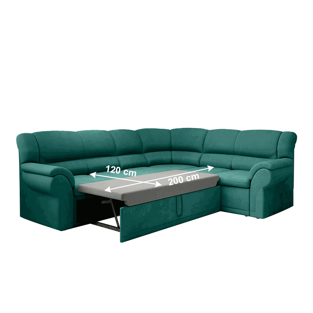 Rohová rozkládací sedací souprava, smaragdová, pravá, AMELIA