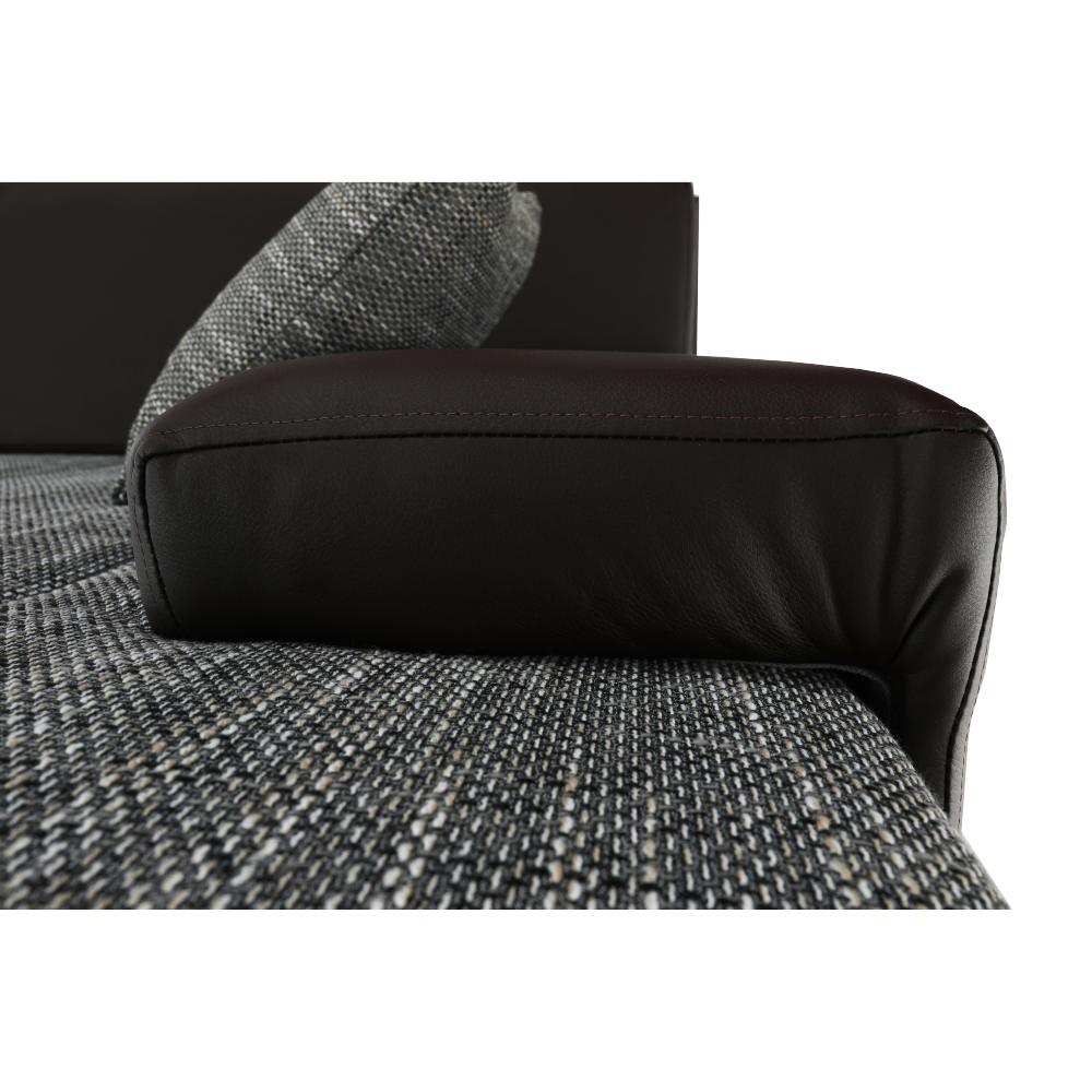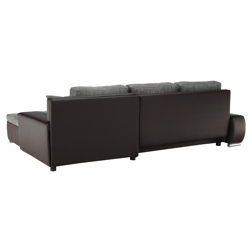 Univerzální (L / P) rohová rozkládací sedací souprava s úložným prostorem Oděruodolnost textilie berlin podle testu Martindale: 55 000 oděrů Oděruodolnost ekokůže podle testu Martindale: 100 000 oděrů Materiál: látka Berlin / ekokůže Barva: hnědá / hnědošedý melír Rozměry (ŠxHxV): 257x180x83 cm, spaní: (ŠxD): 149x206 cm Výška spodního prostoru od podlahy: 5 cm Dodávané v demontu