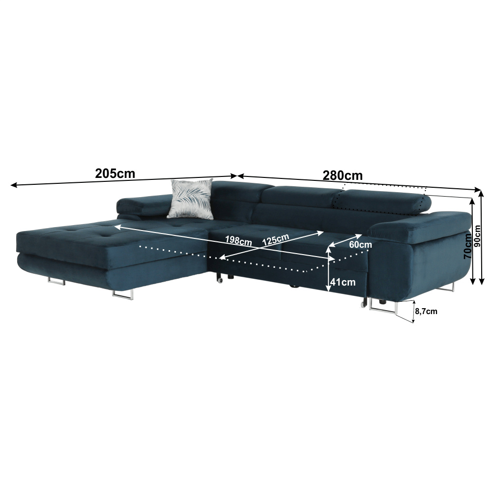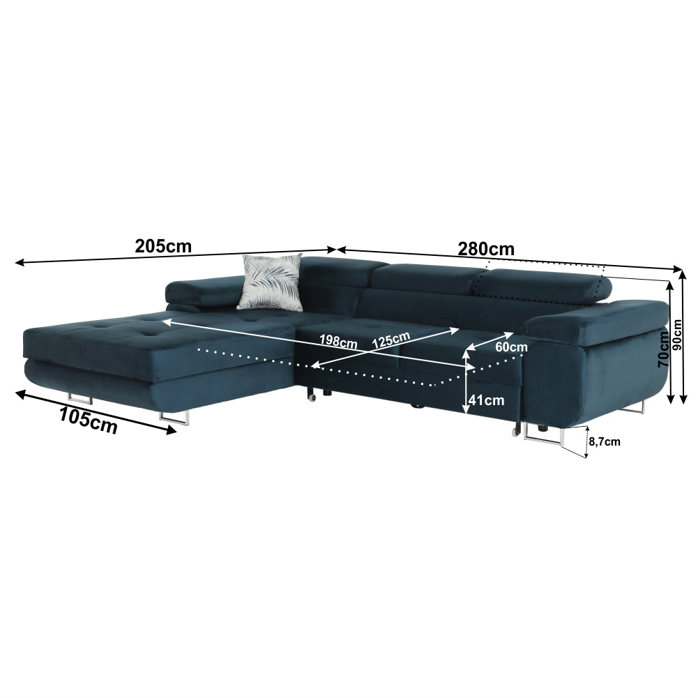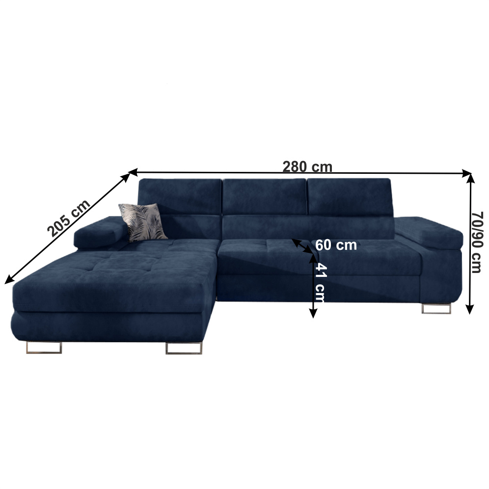 Materiál: látka Monolith Oděruodolnost textilie podle testu Martindale: 100 000 oděrek Barva: 77 modrá / vzor Rozměry (ŠxHxV): 280x205x70 / 90 cm Výška sedu: 41 cm Hloubka sedu: 60 cm Plocha na spaní (ŠxD): 125x198 cm Výška spodního prostoru od podlahy: 8,7 cm Šířka otomanu: 105 cm Nosnost: 90 kg levé provedení Pružinová výplň celočalouněná rozkládací S úložným prostorem Dekorativní šití sedáku 6 stupňovové polohování opěrek automatické polohy S úložným prostorem Dodávané s polštářkem Dodávané v demontu Možnost objednání v 5 barevných provedeních Monolith v ceně 31.790 Kč. Při individuální objednávce je třeba zaplatit 20% zálohu z dané částky. Po uhrazení zálohy bude Vaša objednávka zadána do výroby. Dodací doba 6-8 týdnů.